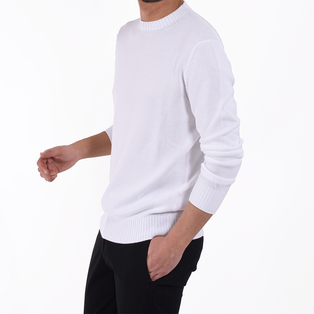 ・世界三大綿の一つに挙げられる高品質なスーピマコットンを使用したミドルゲージ(8ゲージ)のクルーネックニットです。