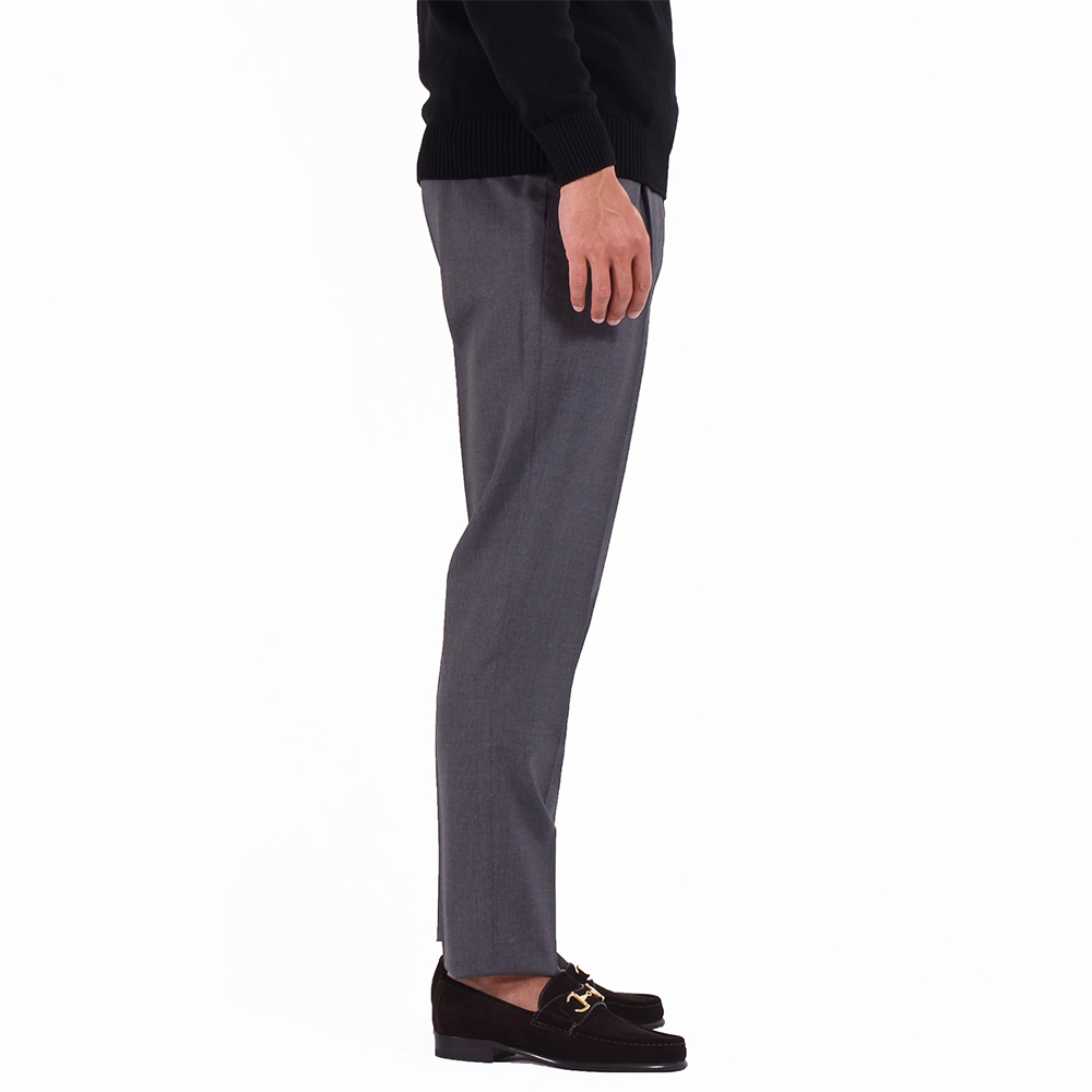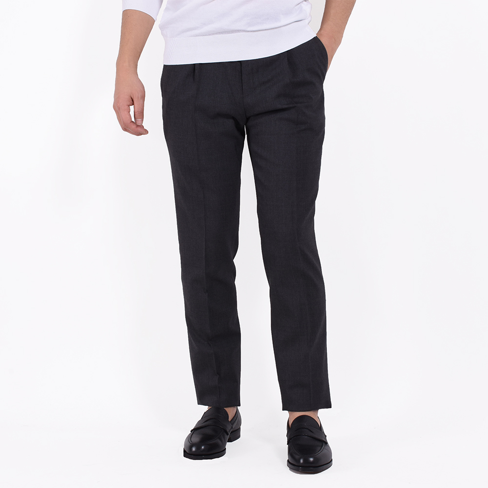 ・PTを代表するモデルである"GENTLEMAN FIT"はドメニコ・ジャンフラーテ氏がディレクターとなって生み出したもの。しっかりと確保された股上寸によって腰廻りのホールド感が良く、プリーツの入ったやや余裕ある腰廻りとテーパード感あるシルエットが特徴です。このような絶妙バランスがゆえ、もちろんジャケットに合わせられ、スニーカーにも合わせられ、どんなスタイルでもエレガントさをキープできるのです。