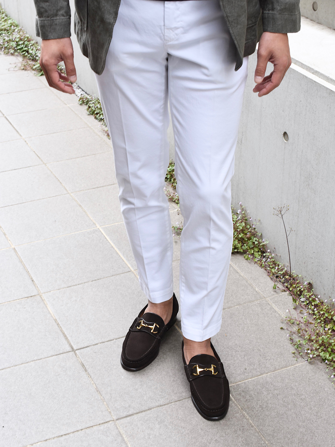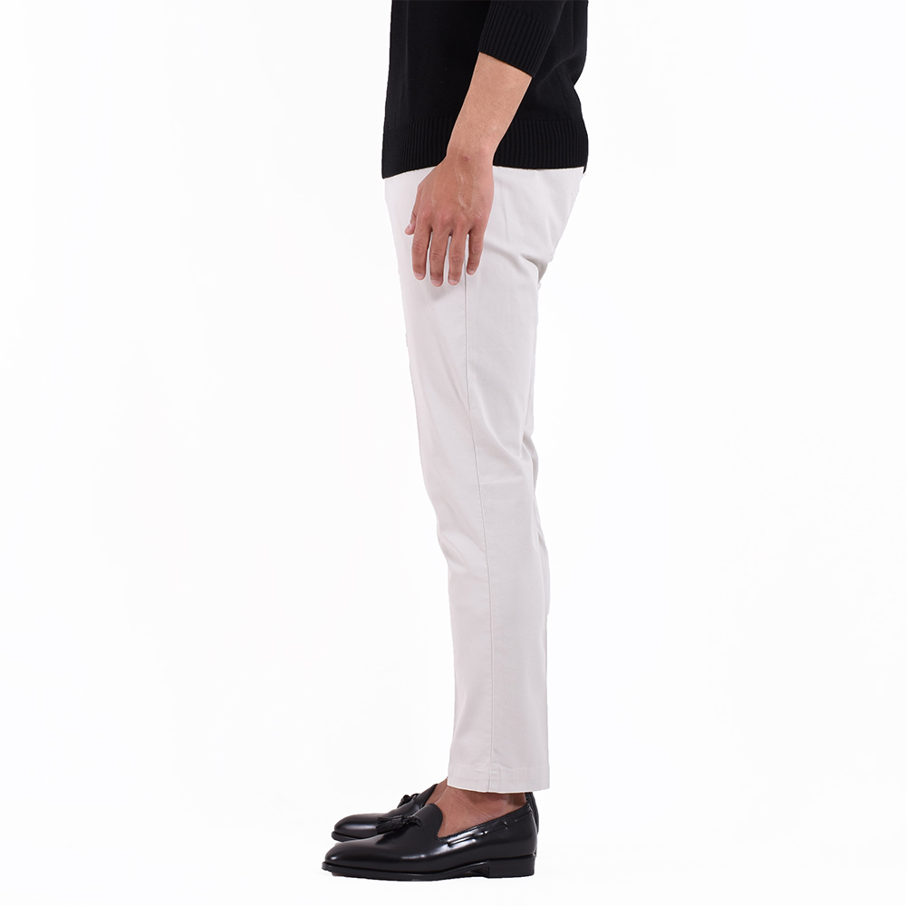 今シーズンも登場致しました!もう、お馴染みのPT01!ではなく、リブランディングを果たし、ブランド名を変更したPT TORINOです!こちらは代表的モデルの “SKINNY FIT”のコットンパンツ。コットンでもツイル素材という事で、コットンなのにシワになりにくく、手触りが良いのが特徴的です。そして、ストレッチ性もしっかりあるので、屈伸ができる程楽。細身体型で普段サイズ42を着用するのですが、こちらのモデルはワンサイズ上げだサイズ44でピッタリでした。サイズ42だと脚に生地が張り付く感じですが、サイズ44だと適度なゆとりがありシルエットもしっかりキープ。股上は少し浅く、ウエスト位置は腰骨の真ん中辺りでした。普段選ばれているサイズのひとつ上でもよろしいかなと思います。
