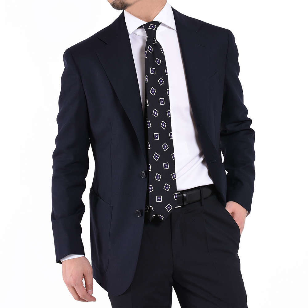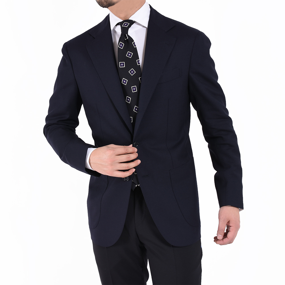 ・深みあるネイビーの色合いは実に上品。ベーシックなネイビージャケットは仕立てはもちろんのこと、色合いや生地の良さが問われます。こちらはそれらを全てクリアする一着です。