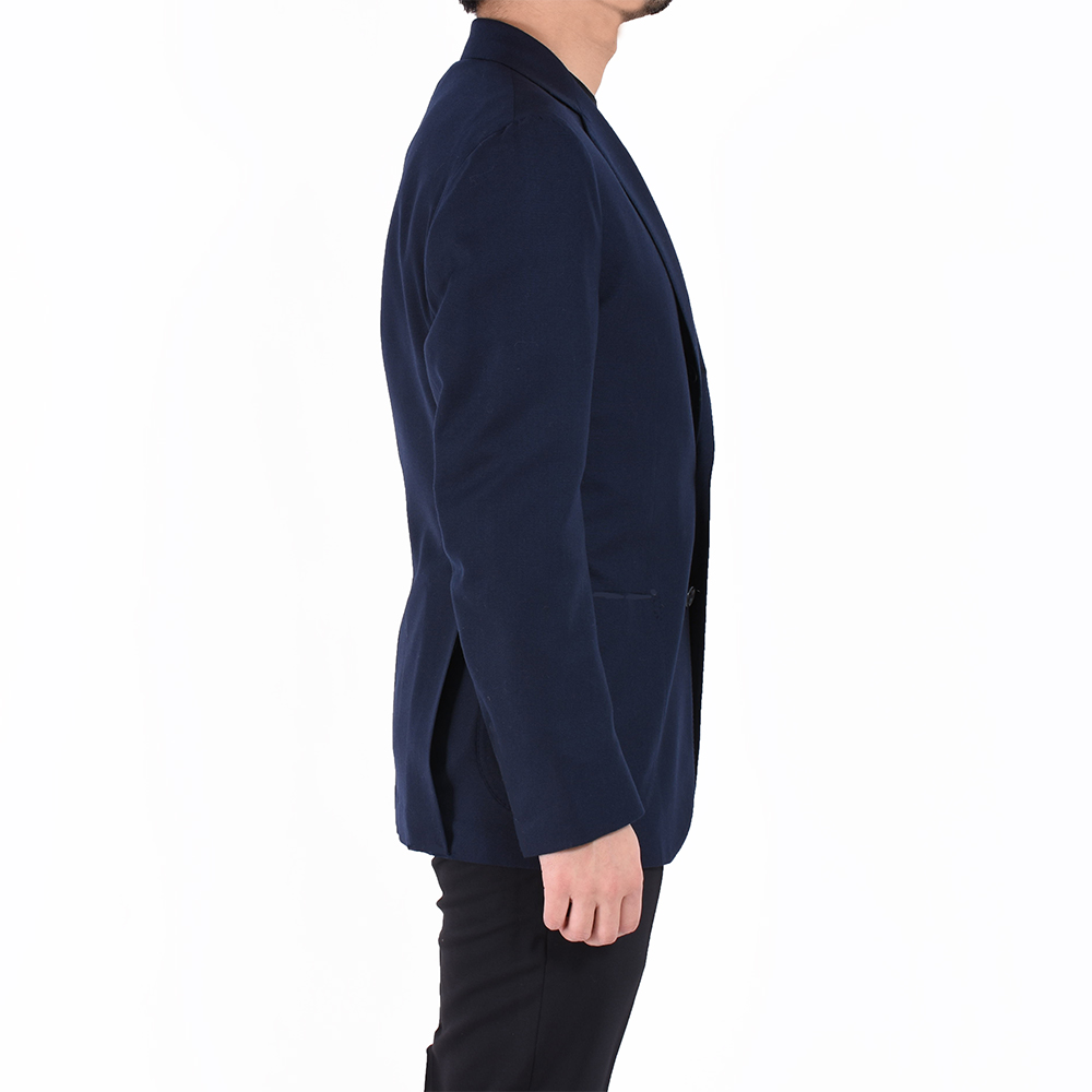 ・目付230グラム、薄手のカシミアネイビージャケット。カシミアは秋冬素材のイメージが強いものの、薄手であれば春夏秋までの3シーズン着用できる優れモノです。