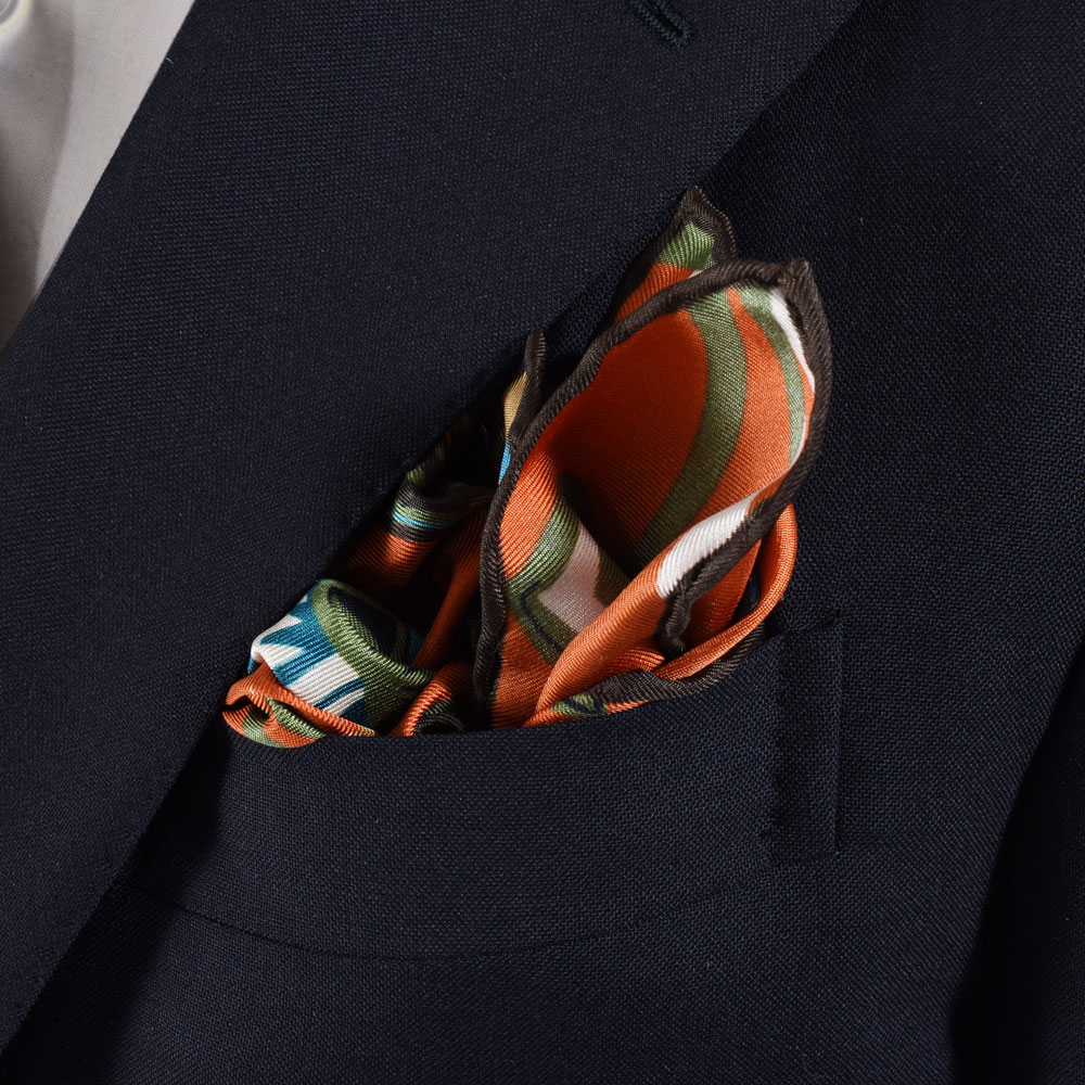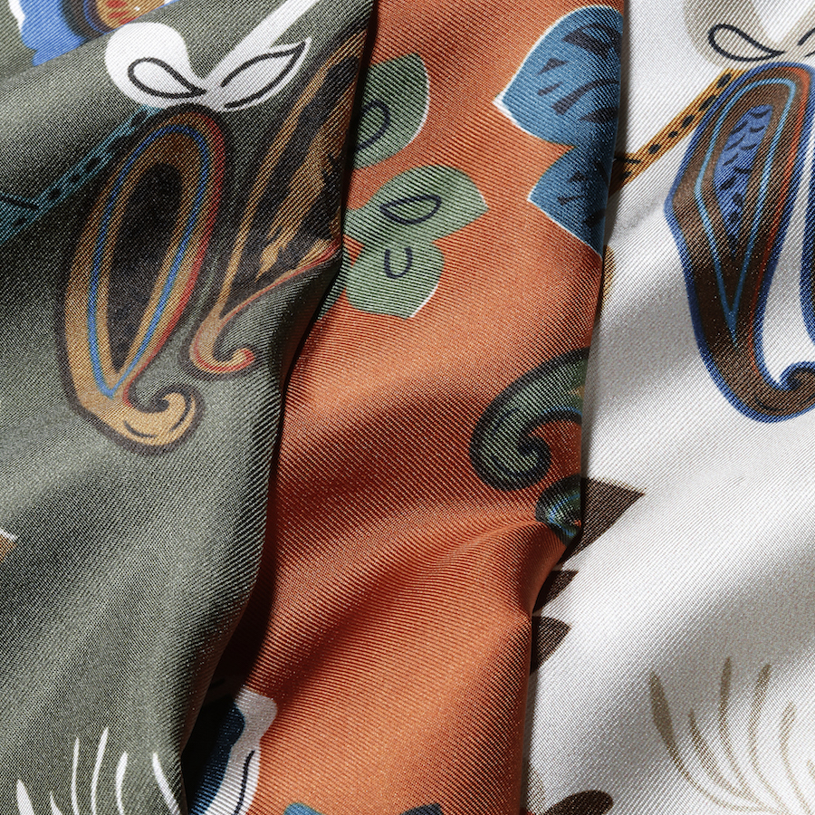 ・丁寧に巻かれた縁のハンドロール仕上げ、しなやかなシルク、美しくプリントされた柄など「FRANCO BASSI(フランコ バッシ)」の確かなクオリティーを感じさせる一枚。