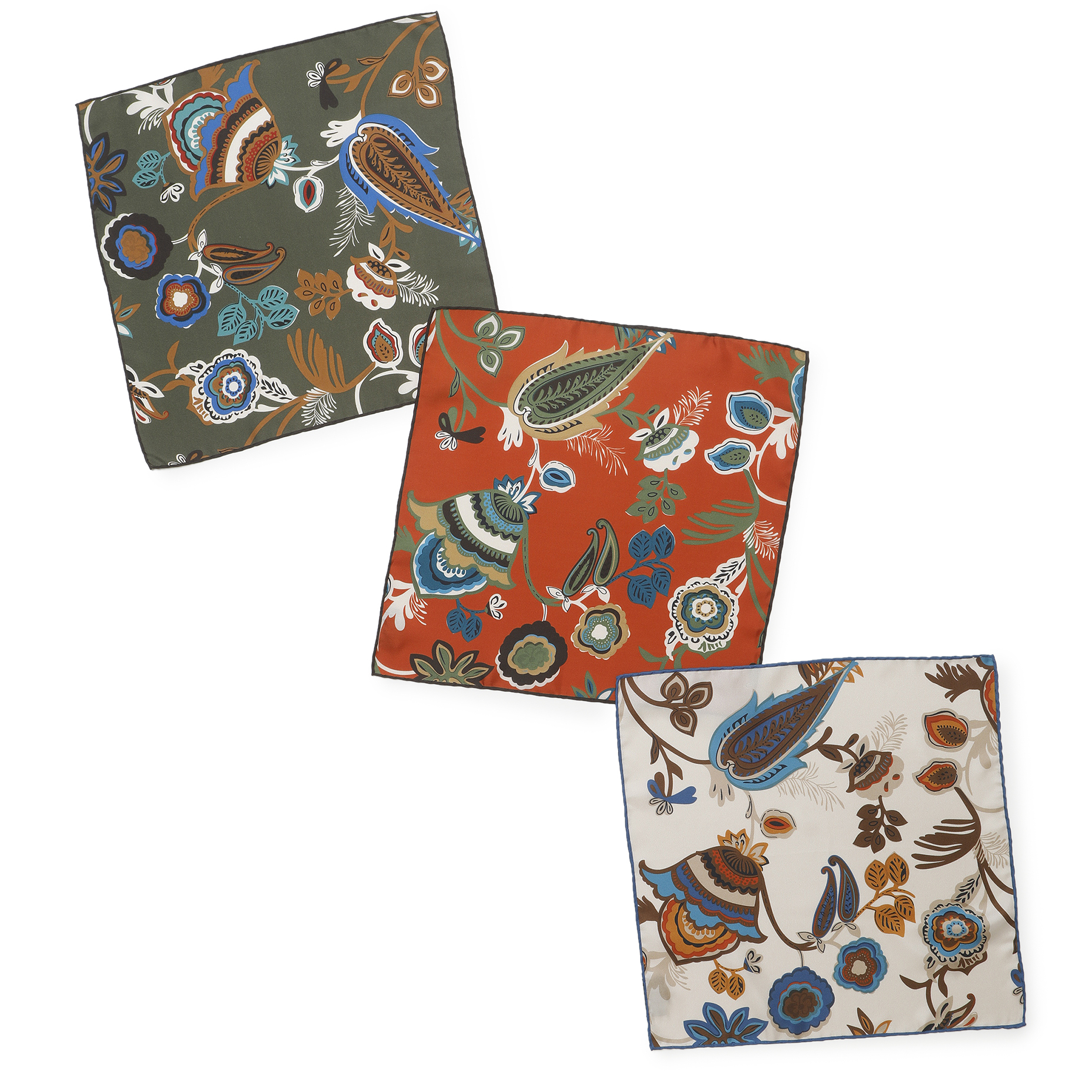 美しく花やペイズリーがプリントされた柄が胸元を華やかにしてくれる一枚。