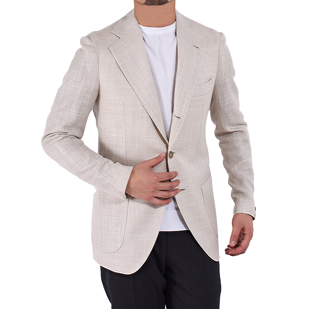 • 背抜き仕立て、サイドベンツ、袖口アンフィニッシュ(4つボタン)、胸バルカポケット、パッチポケット2つ、内側ポケット3つ