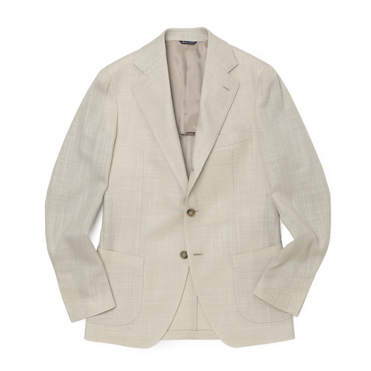 ・ウールにシルクをブレンドした生地は実に軽やか。またリネン特有の節が生地感に現れ、メッシュ状に織られているので清涼感に富んでいます。