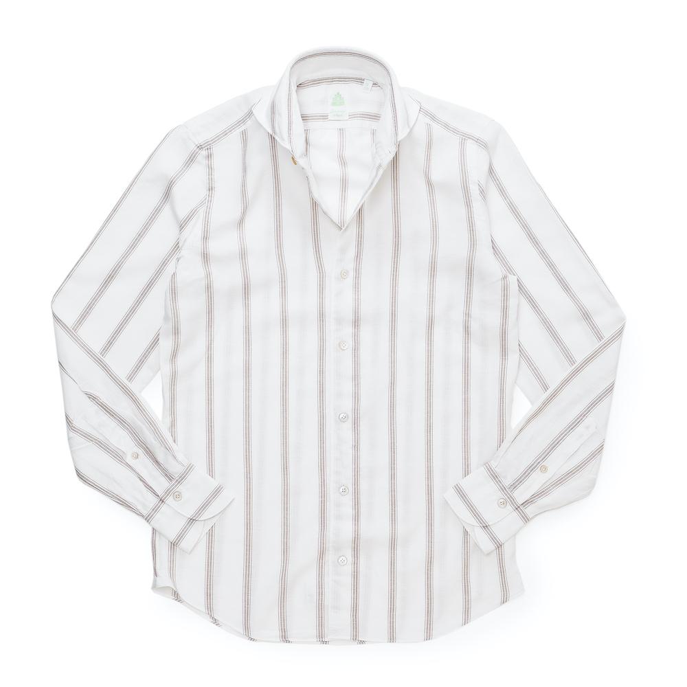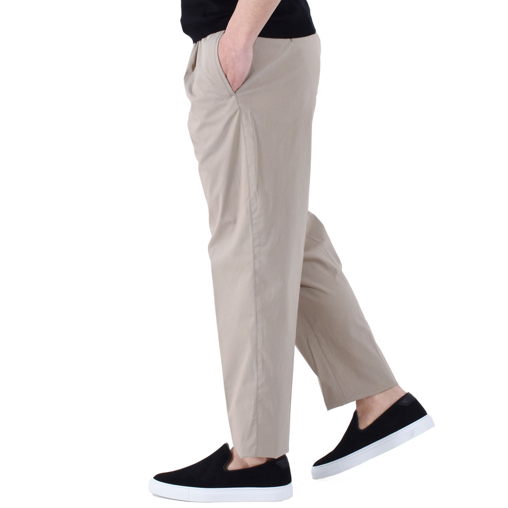 ・生地はコットン&ナイロンにストレッチを効かせたソラーロ。サラスベなタッチと抜群のストレッチ性によって極めて快適な着心地が得られます。目付は200グラム。ライトベージュとライトネイビーをラインナップしました。