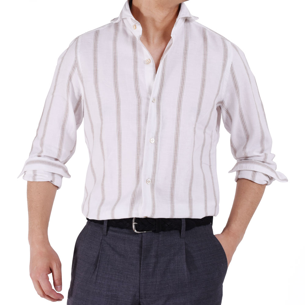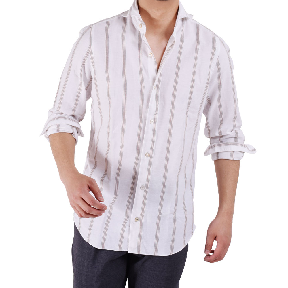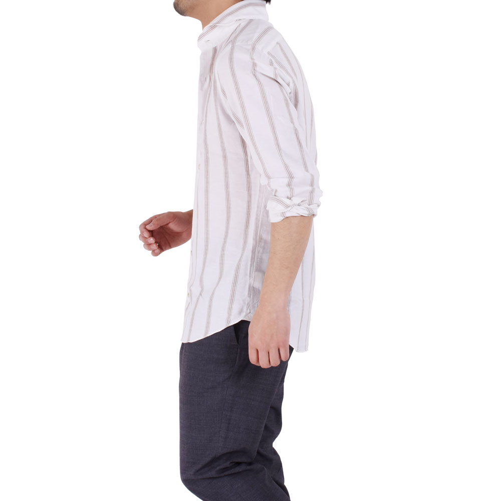 フィナモレ / コットン&リネン ストライプ カッタウェイカラー シャツ/BALI SERGIO/P2250