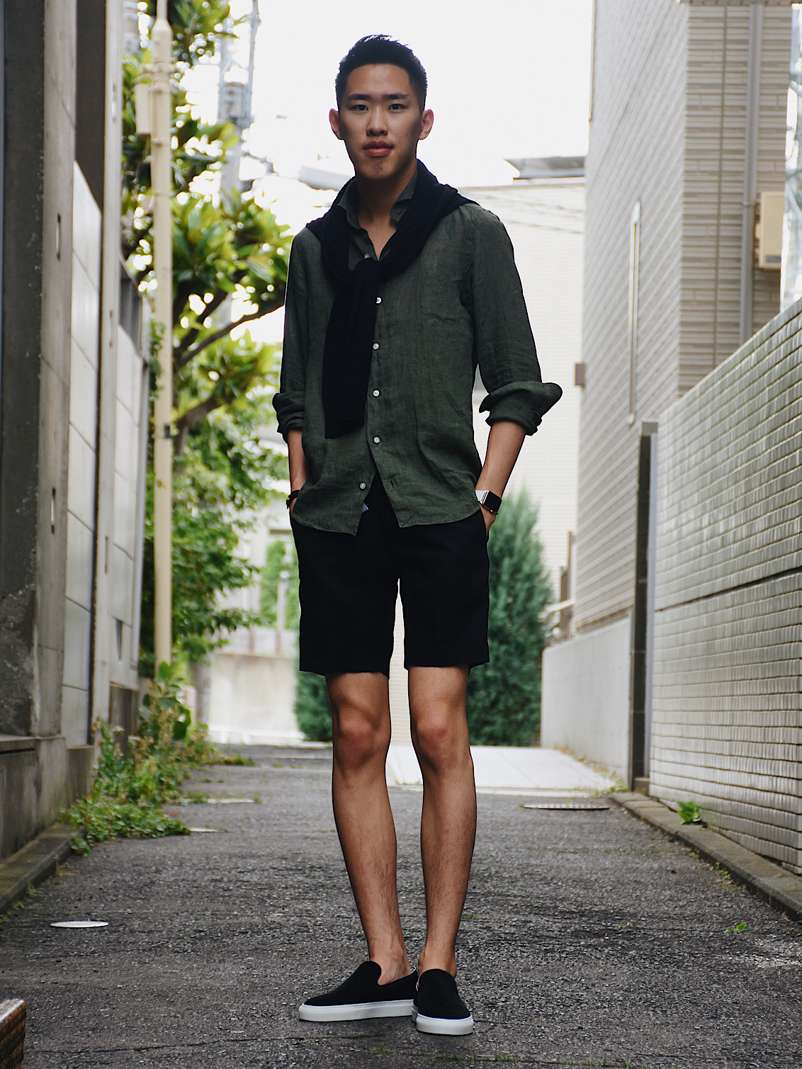 個人的に一押しのショーツが入荷して参りました!ロールアップすると裾にボリュームが出てしまい野暮ったい印象になるのですが、こちらはその必要が無い膝上の絶妙な丈感。プリーツが入っているので立体的でストンと落ちる綺麗なシルエットを演出します。個人的にはタックインで上品なコーディネートを楽しみたいアイテムです。