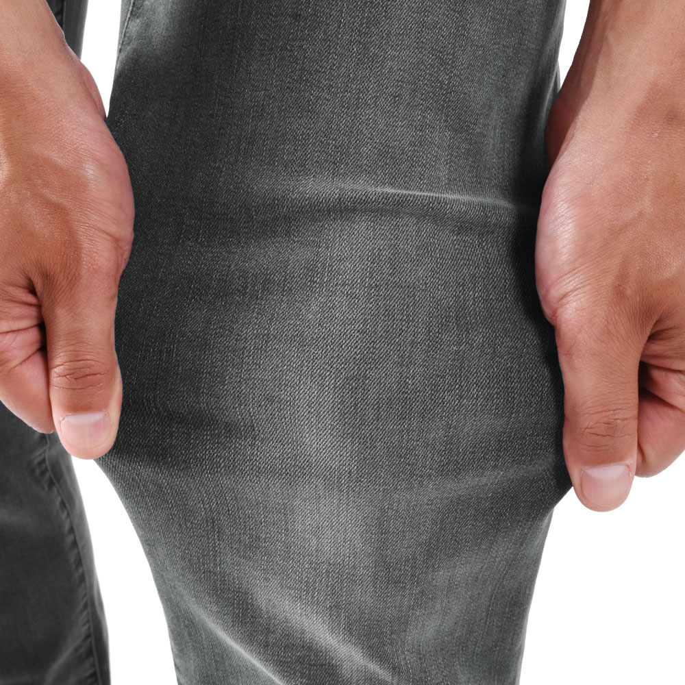 ・生地は通年穿けるくらいの厚みで極めて高いストレッチ性を実現!グレーデニムと呼べる程度に加工されており、こなれ感が漂います。