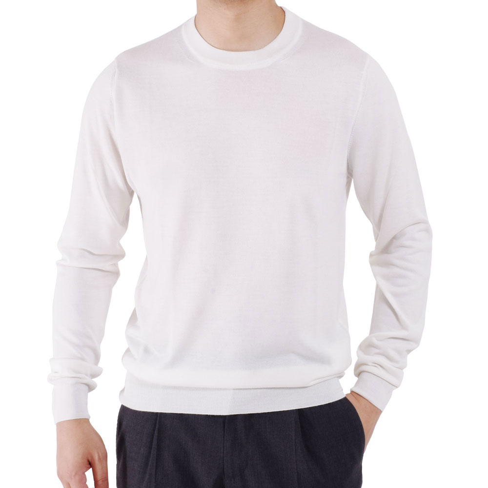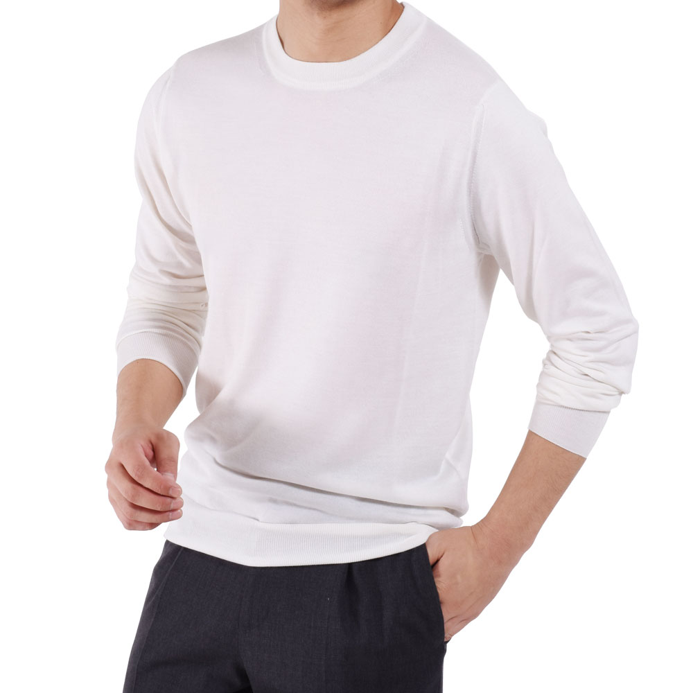 ・カシミア70%、シルク30%の極細糸を使用したハイゲージクルーネックニット。スベスベした手触りとトロトロの肌触りは驚愕モノ!パッと見でも上質さが分かるほどの圧巻クオリティーです。