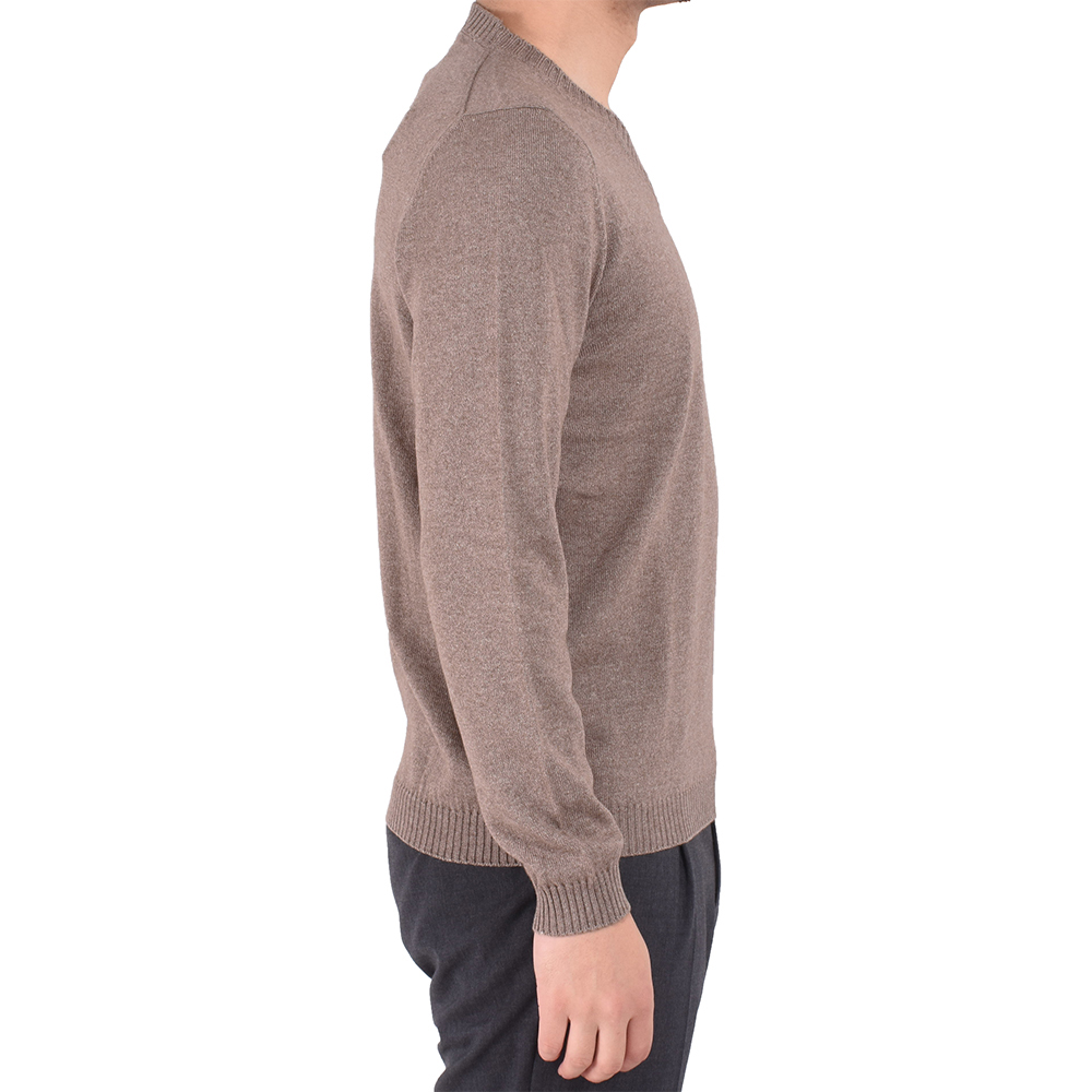 カシミア&シルクだと、トロりとした肌触りを想像される方がいらっしゃるかと思われますが、こちらはサラリとした肌触りが特徴的です。またカシミアの柔らかはしっかりありつつも、シルクが入っておりますので、編み地の強度はあるのも良い点!Vネック仕様ですが、深すぎない開きですので、ほんのり知的感が漂います。裾口と袖口のリブ幅は細めなので、とてもスッキリした印象なのが特徴的です!細身体型で普段ニットだとサイズ46ですが、こちらはサイズ48を着用しジャストサイズでした。ジャケットやライダース、コートを合わせてみてはいかがでしょうか!