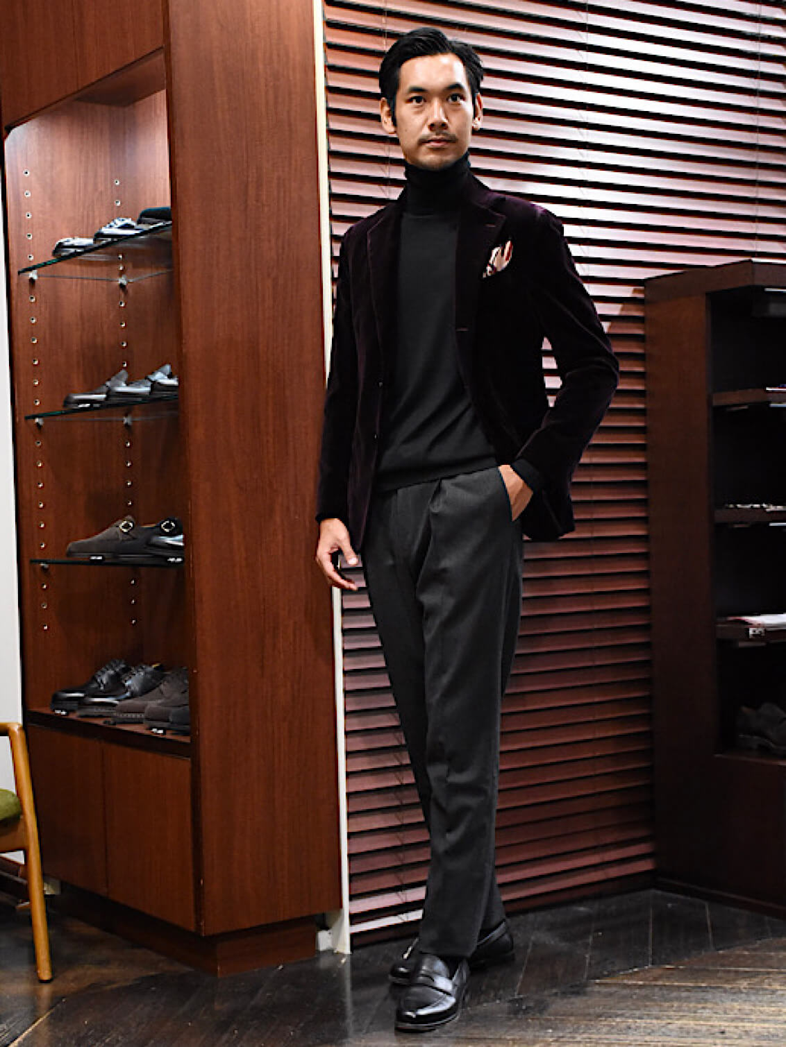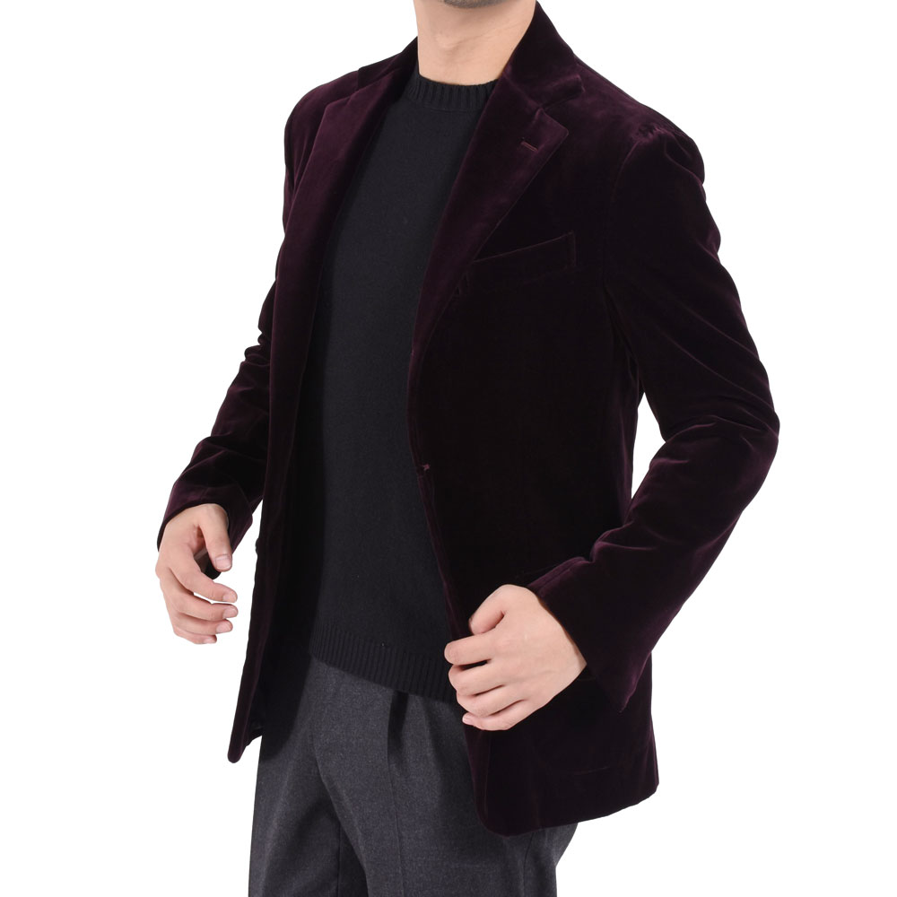 ・華やかでシックなムードも醸すコットンベルベット生地のジャケット。夜の会食や遊びに行く際に周りからちょっぴり注目を集める一着。ほどよく"映える"のでちょっとしたパーティーにも。