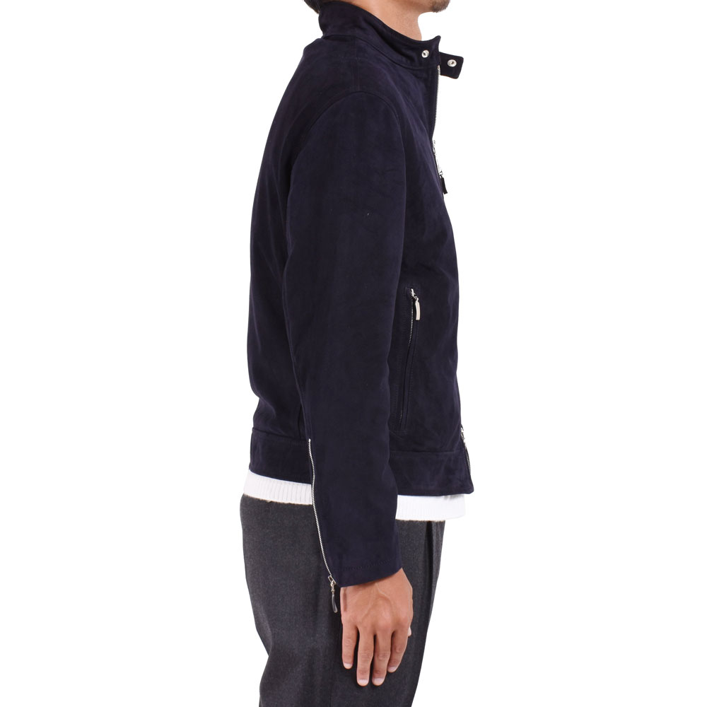 細身体型で表革のモデルはサイズ46でジャストサイズでしたが、こちらの場合はサイズ46だと肩が少し張る感じで、サイズ48がジャストサイズでした。肩幅ががっちりされている方はワンサイズ上でもよろしいかもしれません。