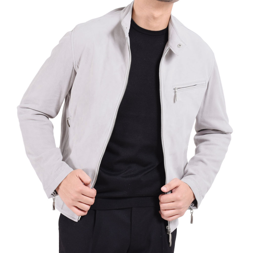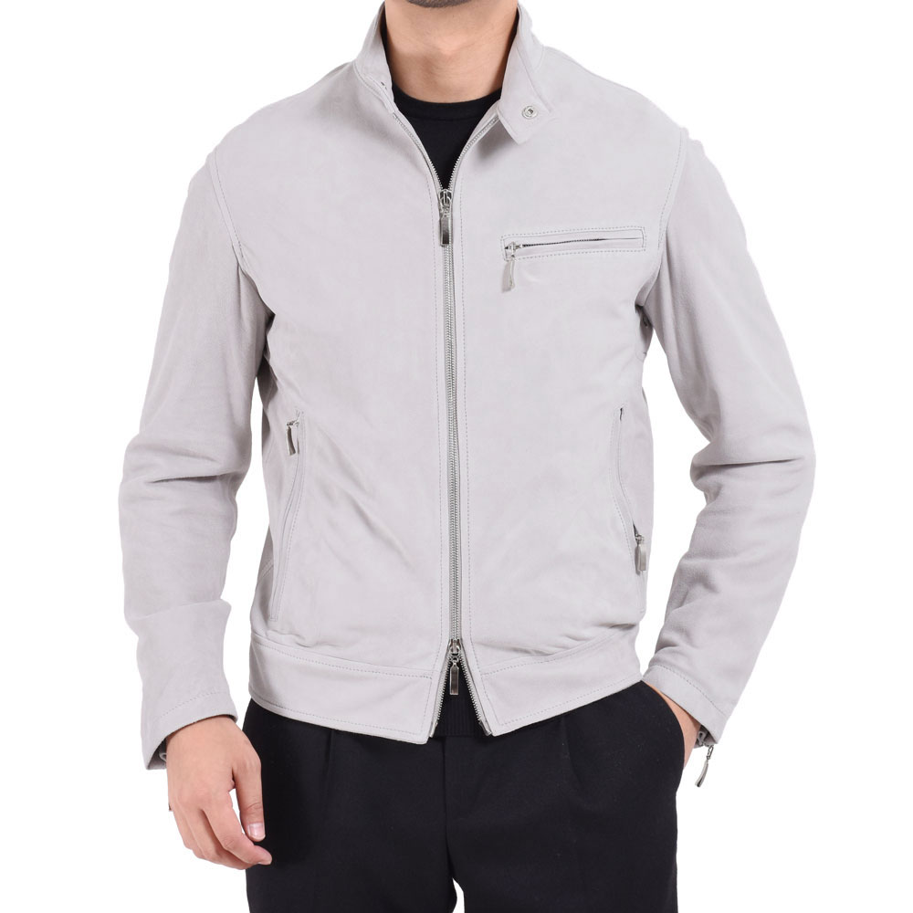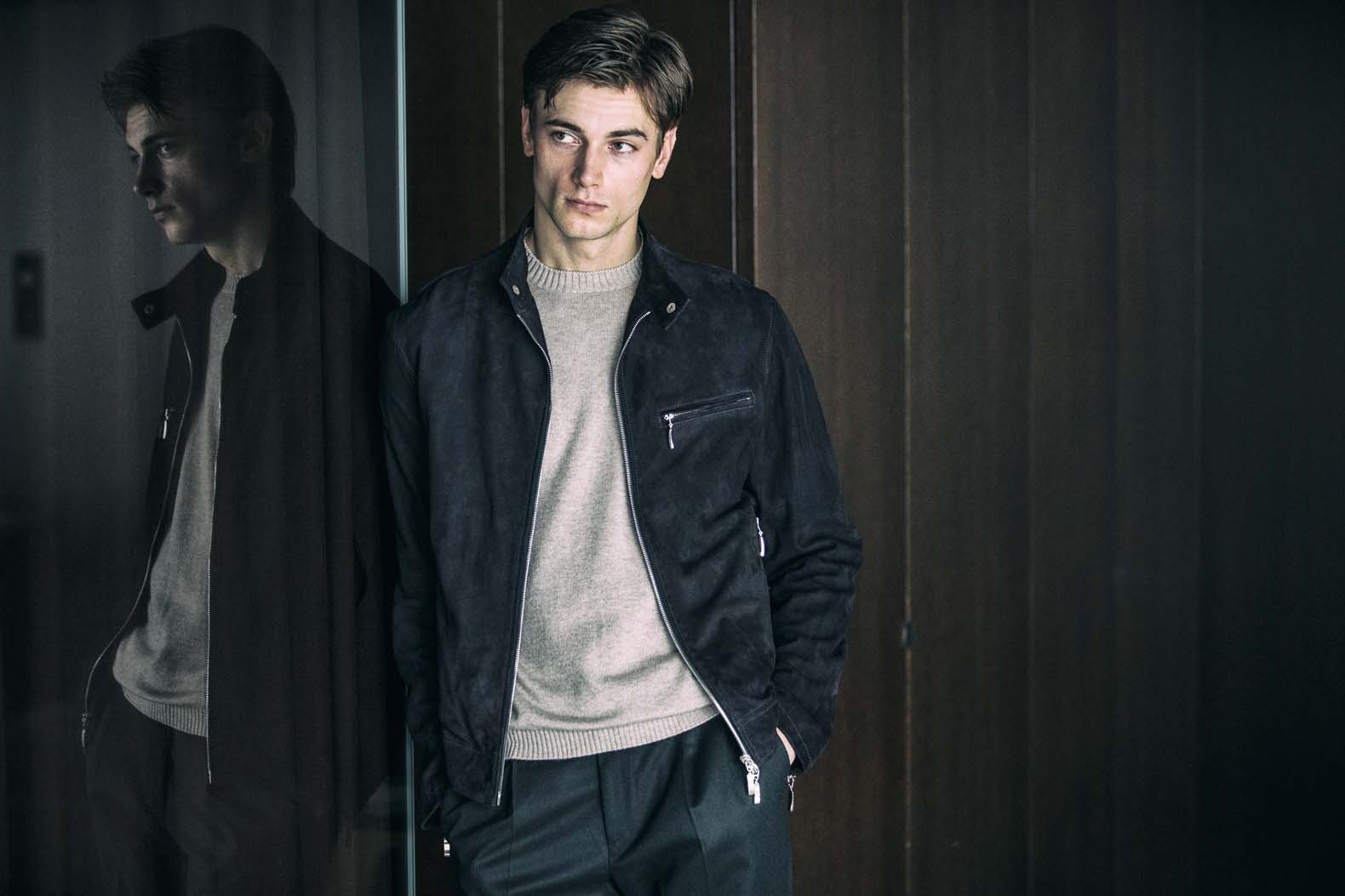 ・自然なシルエットを描くフィッティングで、以前のシングルライダースは背中にアクションプリーツが付いていましたが、今シーズンからは無し。運動量を確保しながらシンプルな見え方となり、一段と洗練された仕上がりに。