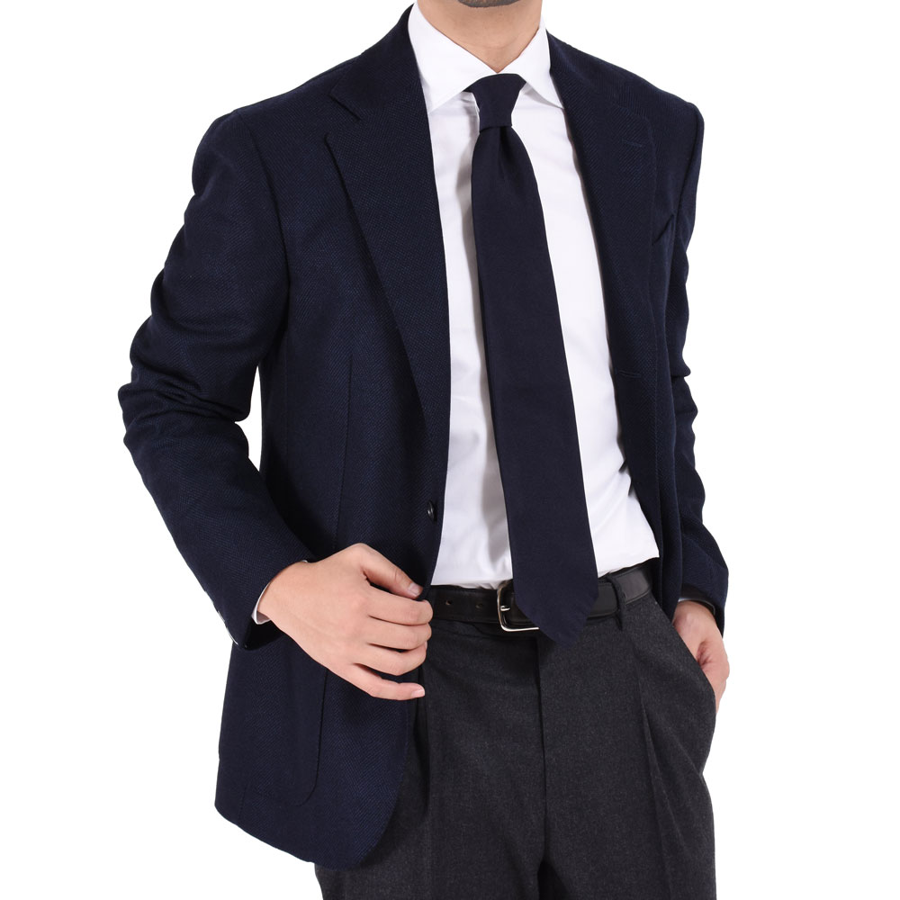 ・豊富なバリエーションを誇る「AVINO Laboratorio Napoletano(アヴィーノ・ラボラトリオ・ナポレターノ)」の襟型の中から、襟の大きさ、開きの角度などを吟味し、現代的に見えるワイドカラー"C30"をセレクト。また、ソフトな芯地、ラウンドのカフス、ボタンの形状をB.R.SHOPが指定してオーダーしています。