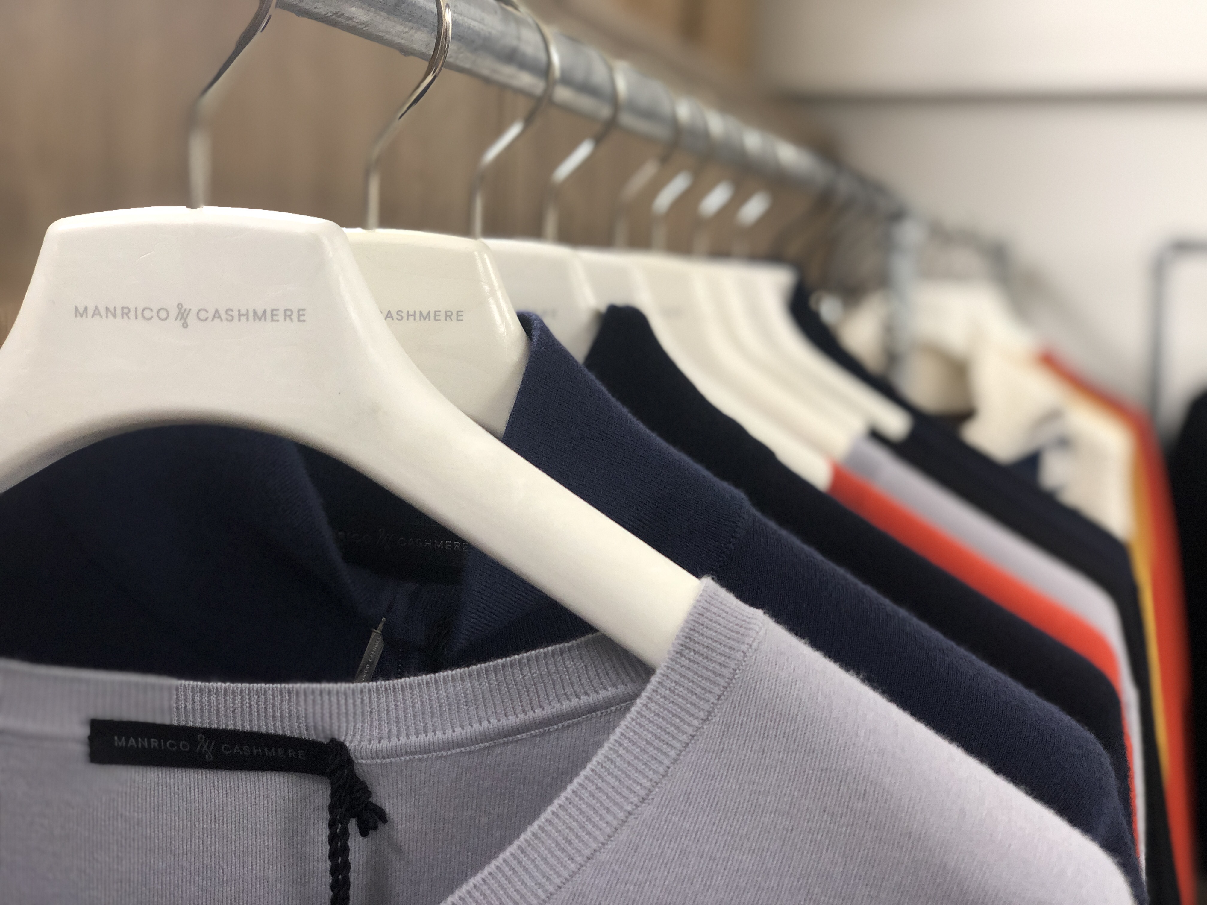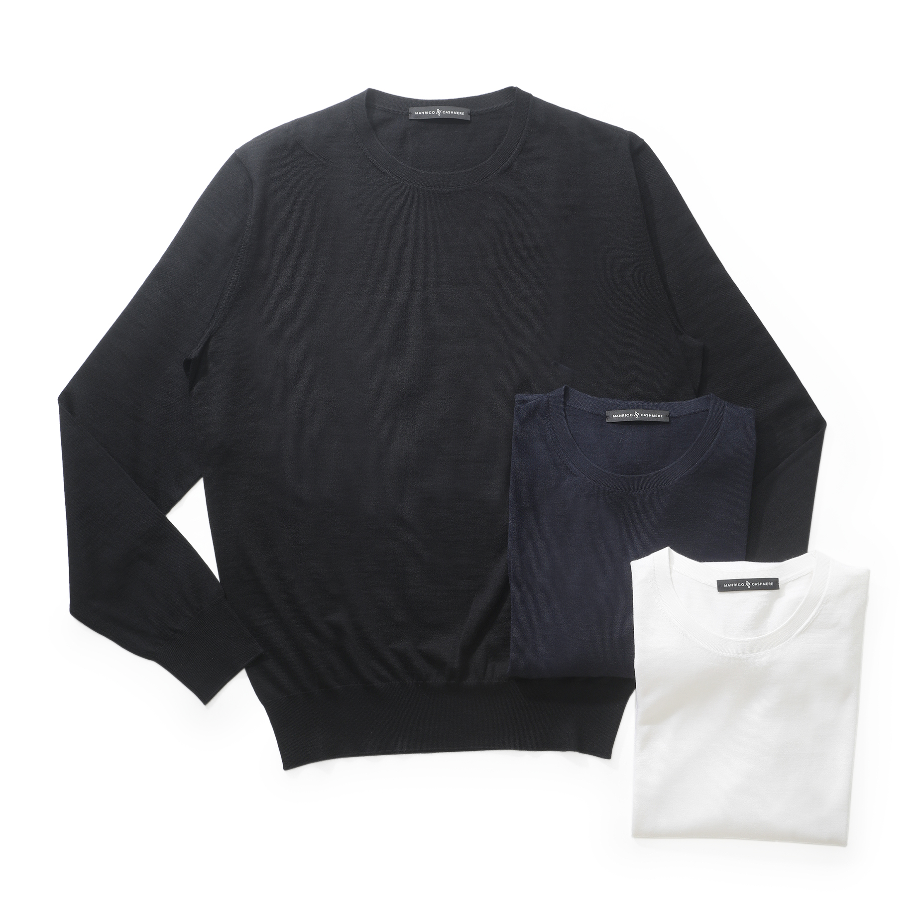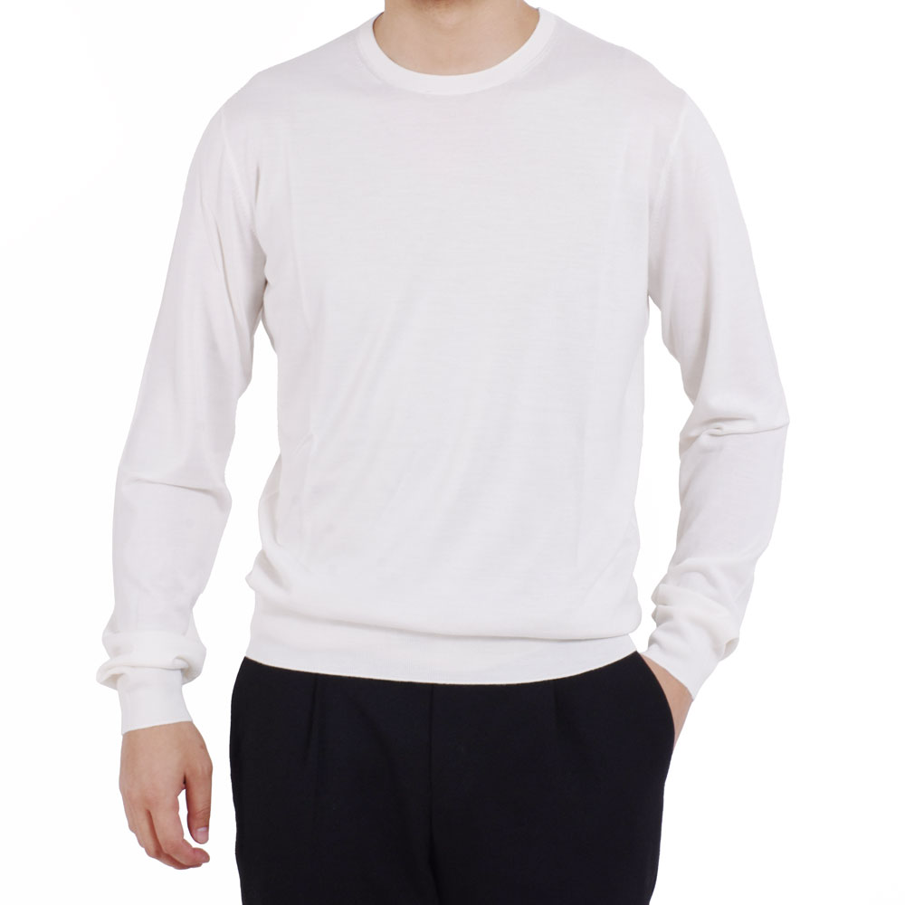 ・今シーズンが日本デビューとなる「MANRICO CASHMERE(マンリコ カシミヤ)」はブランド名通り、カシミヤのスペシャリスト。こちらはそのカシミヤにウールとシルクをブレンドしたスタンダード&ラグジュアリーなクルーネックニットです。