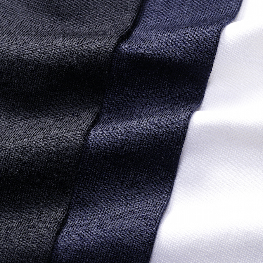 ・ウールによる耐久性、シルクによる艶感、そしてカシミヤによるトロみを持ち合わせ、ハイゲージ糸で編み立てているのでシーズンレスで着用可能!今の時代に求められる一着です。
