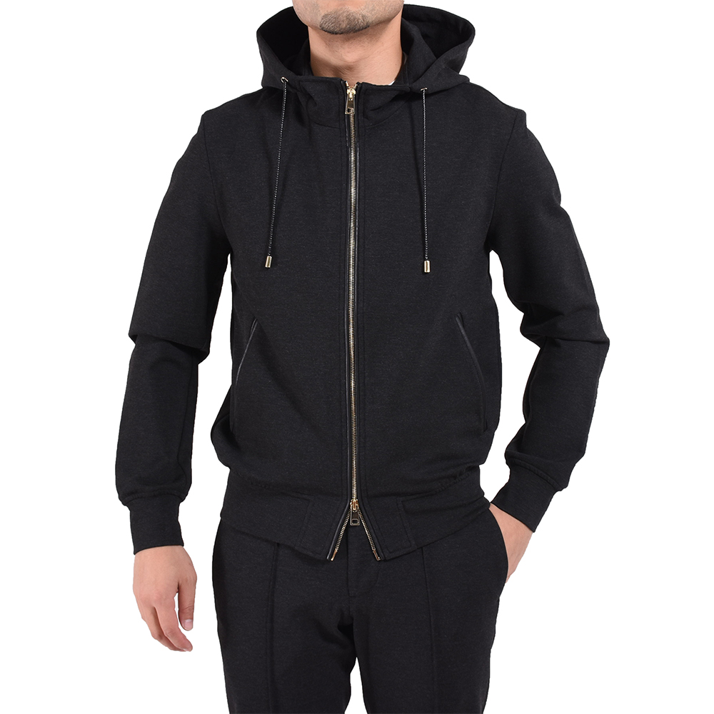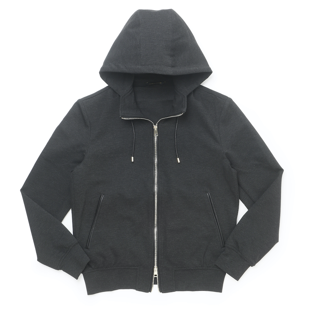 ・イタリアブランドらしくシルエットは実にスマート。フード部分には台が付くことでフードの立ち上がりが適度にあり、ジップを上まで留めた際にアゴまでカバーするのがアメリカブランドなどのパーカーとの違いです。洗練されたシルエットとシンプルなデザインが特徴。