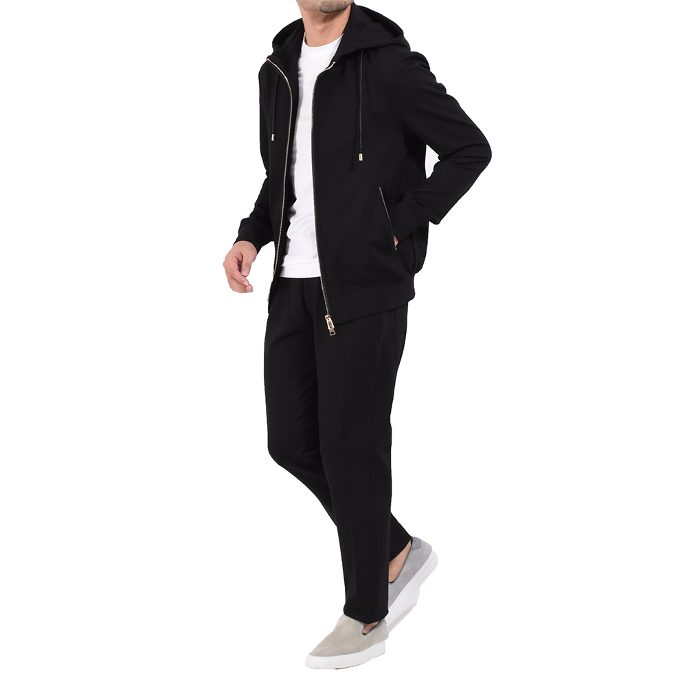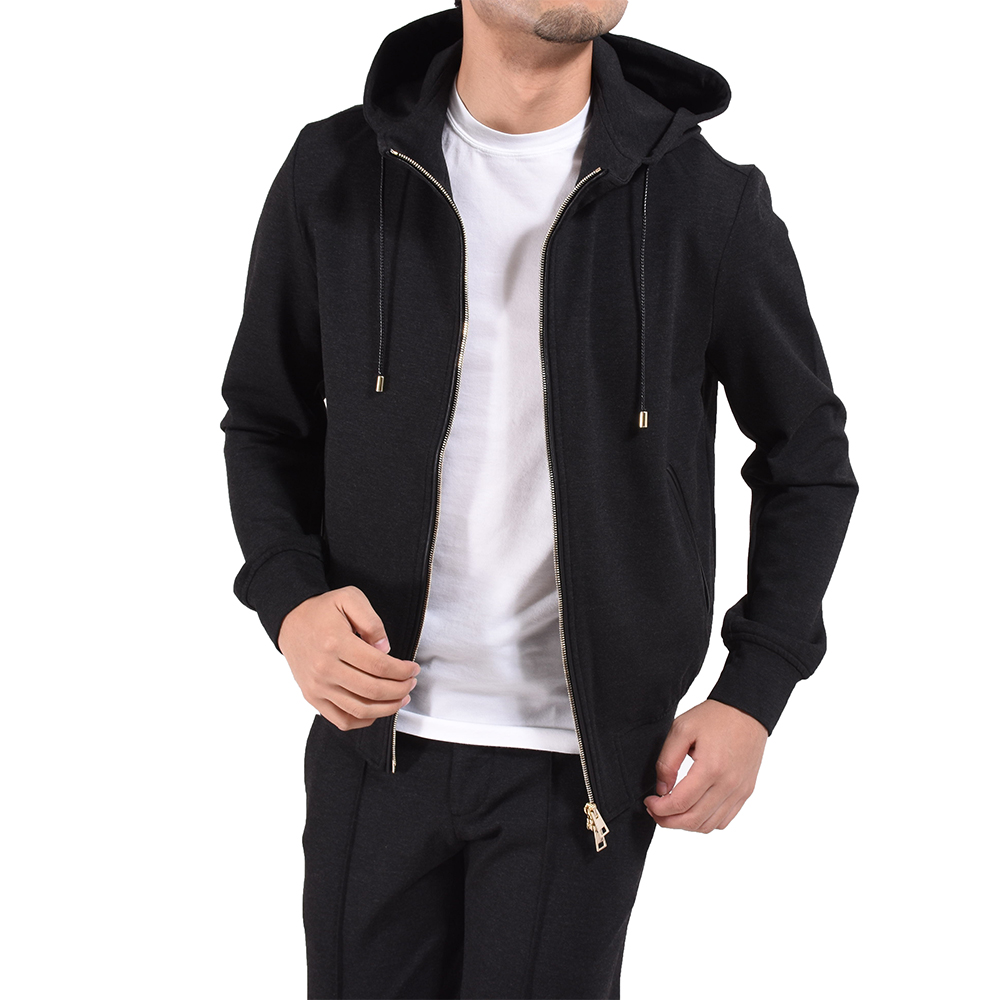 これ1着でラグスポスタイルが仕上がります!スポーティなパーカーではございますが、こちらのBR別注はジップや細かなパーツをゴールドにしたり、フェイクレザーのパイピングを施したりなど、パーカーにラグジュアリーな要素を加えており、見ただけでリッチ感あるオーラを醸す1着に。生地はジャブスでは定番のスタンダードジャージを使用。ハリ感がありながら伸縮性は抜群なのです!また、台襟が付いておりジップを上まで閉めた時に、襟が立つようになっており、クールな印象がございます。