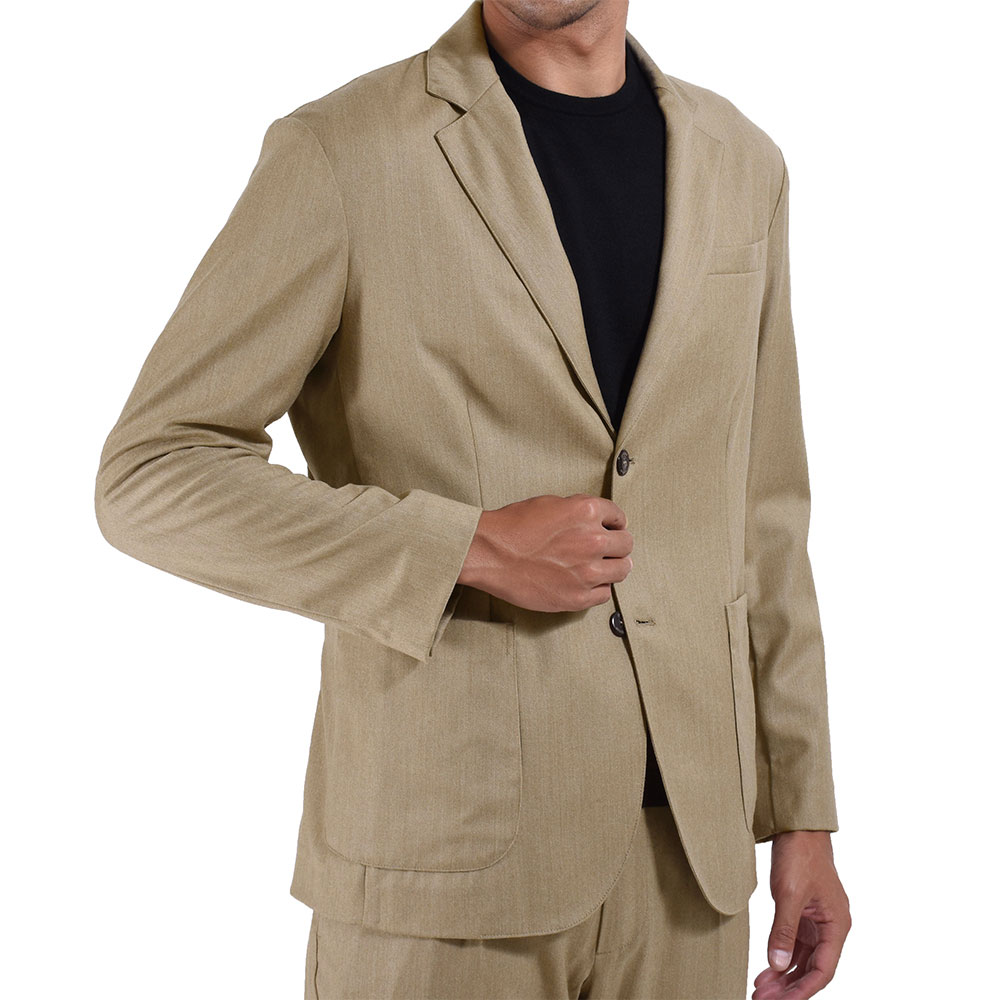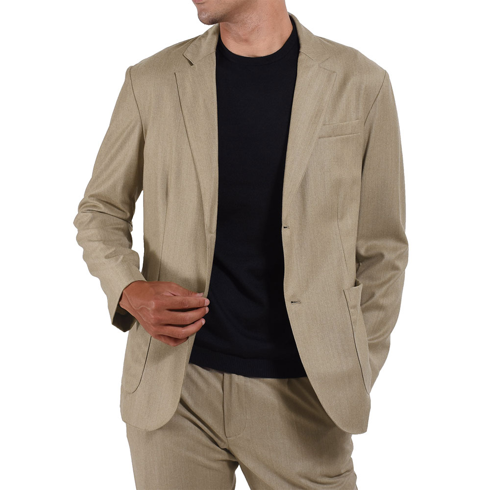 細身体型でサイズ46を着用しジャストサイズでした。ちなみに、同色同生地でパンツを2型ご用意しております。セットアップでのご購入をお勧め致します!