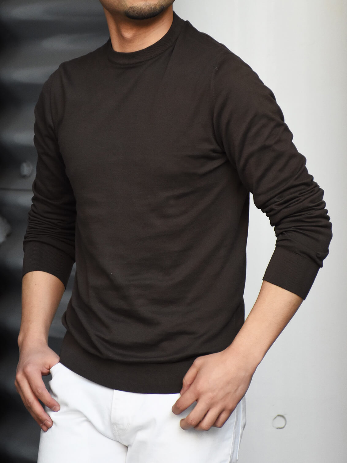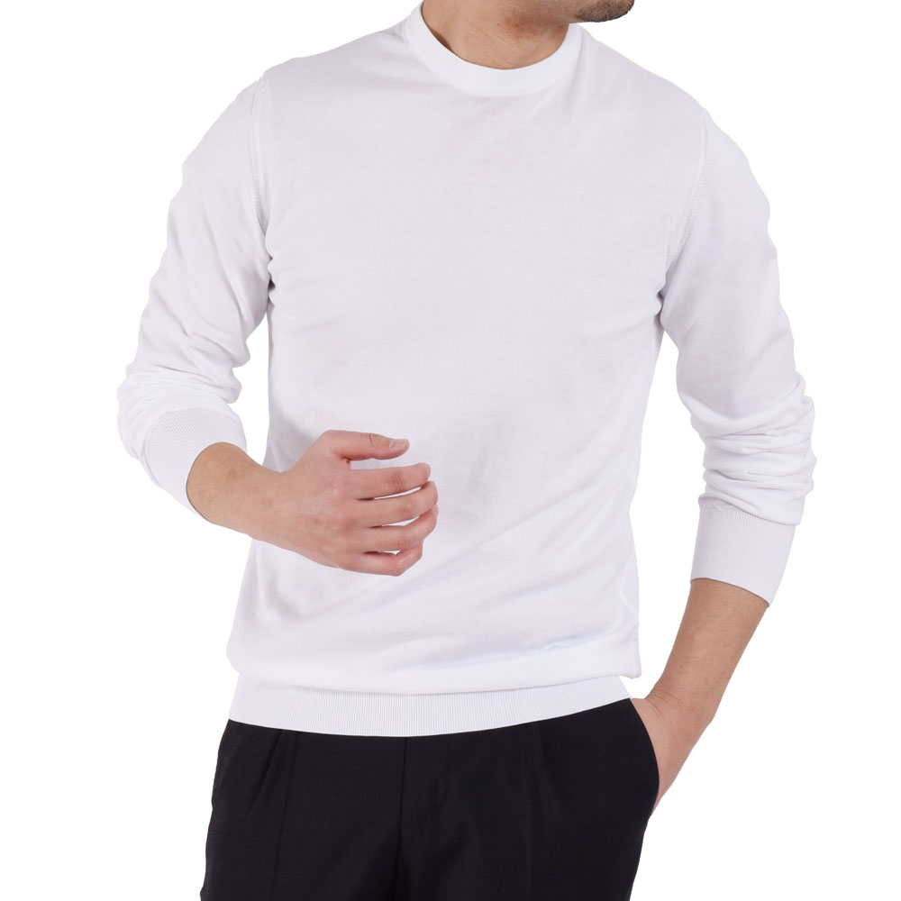 コットン地のハイゲージですが、まるでウールのハイゲージの様な滑らかさはさすがフェデリ。ニットで気になる点と言えば、ネック部分や袖のリブの詰まり加減、そしてシルエット。リブの詰まり加減は非常にしっかりとしていて、個人的に合格◎シルエットも細身体型でサイズ48を着用しぴったりなバランスなので合格◎結果、100点満点の仕上がりのサイズ感なので気になる点は一切なしでした!カジュアルスタイルはもちろん、ジャケットのインナーとしても使えるのでぜひワードローブに追加してみてはいかがでしょうか!