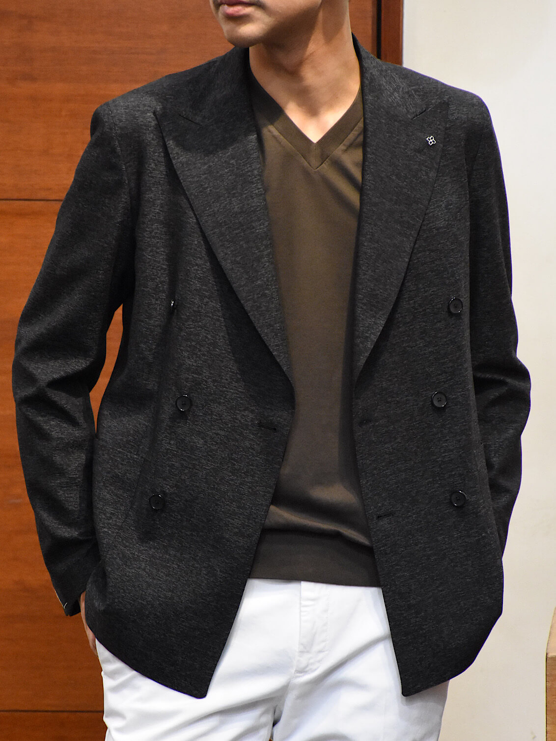 ・シルエットは今の気分を反映させた"ちょいユル”。リラックス感ある着心地が特徴です。もちろん一枚で着られる程よい深さのVネック。