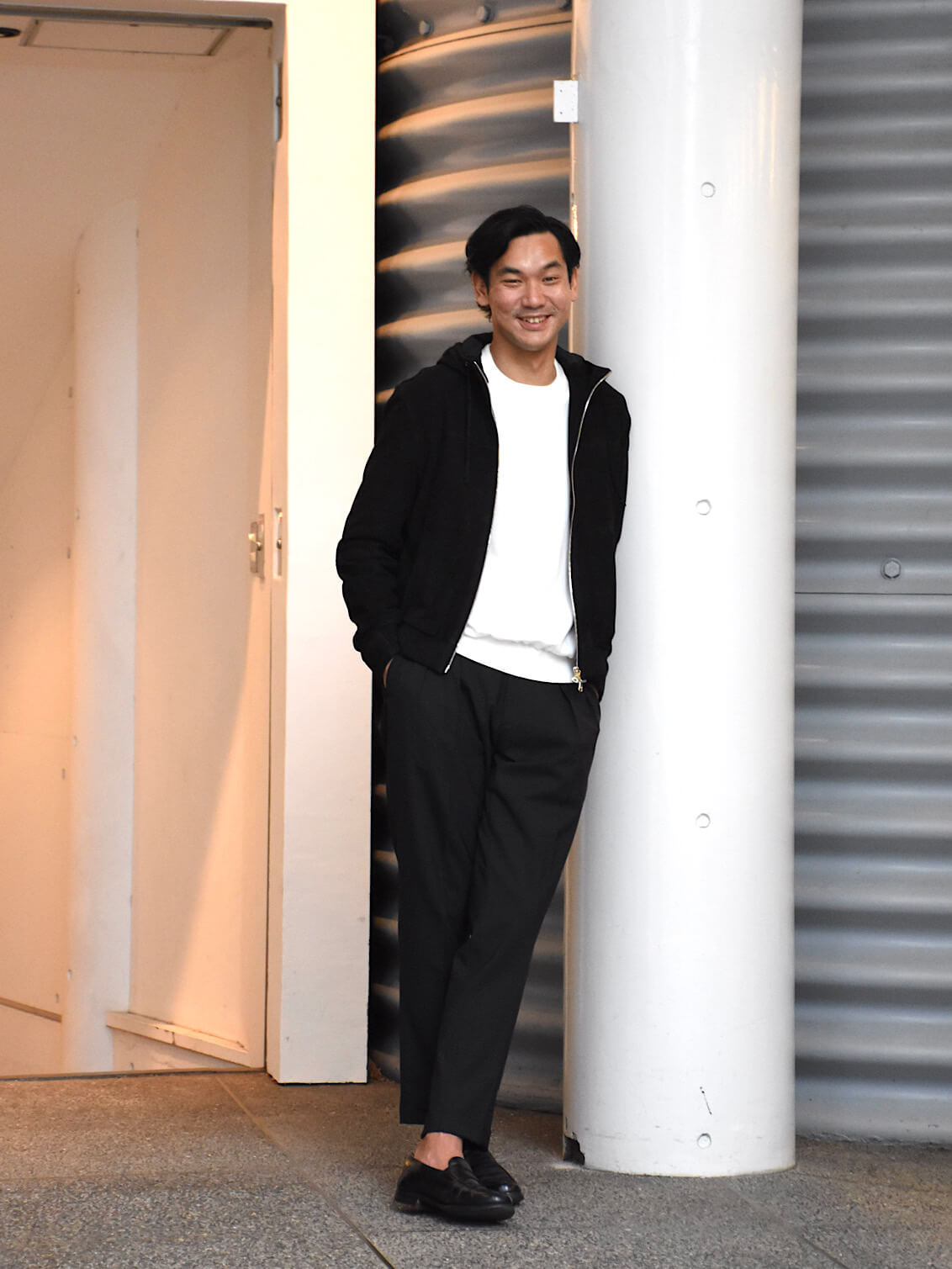 ・コンパクトでフィット感あるシルエットゆえ、極めてモダンに都会的に映るパーカーです。さらに別注ポイントとしてフードのハトメパーツとフロントジップをゴールドにしました。全3色をラインナップ。