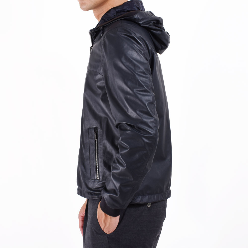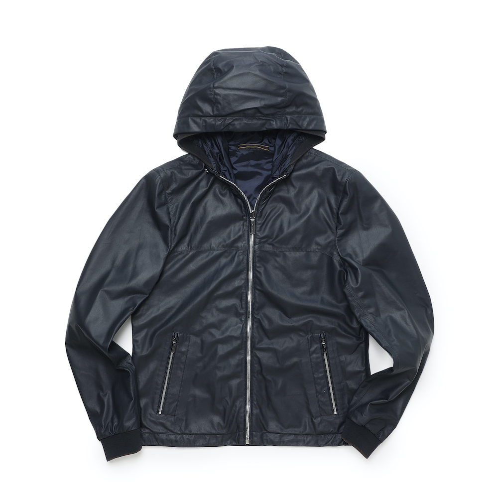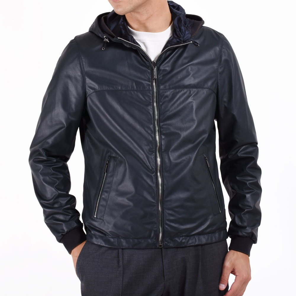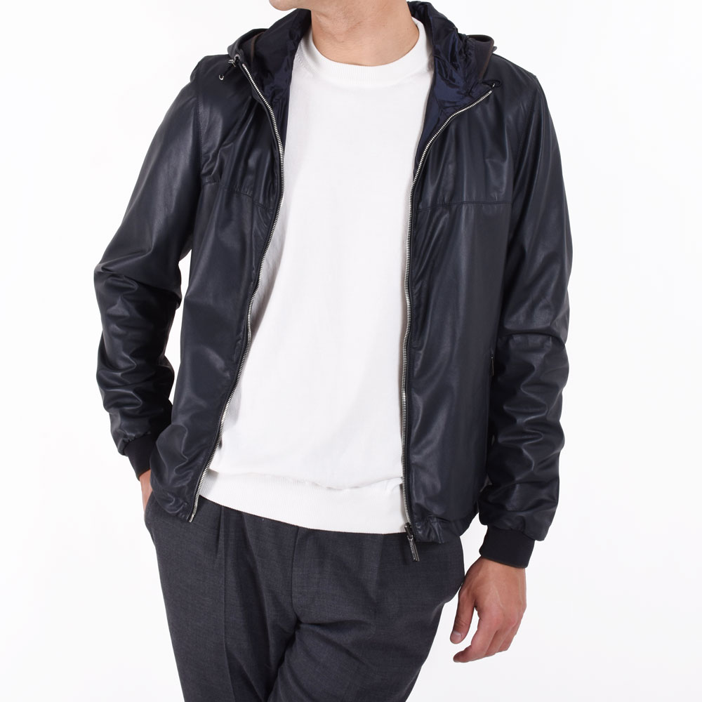 最高級レザーパーカーが登場!極薄ナッパレザーを使用したこちらのパーカー。非常に繊細なタッチであり、軽量な仕上がりに。また、リバーシブル仕様になっており、裏側はナイロン生地に。デリケートなレザーだと急な雨には心配!という時に、裏返すだけでナイロンパーカーに大変身。かなり機能的な作りになっております。シルエットは少しゆとりあるバランスに。袖口にはリブが付いているので、袖をたくし上げて着こなすのも、こなれ感があってオススメです!