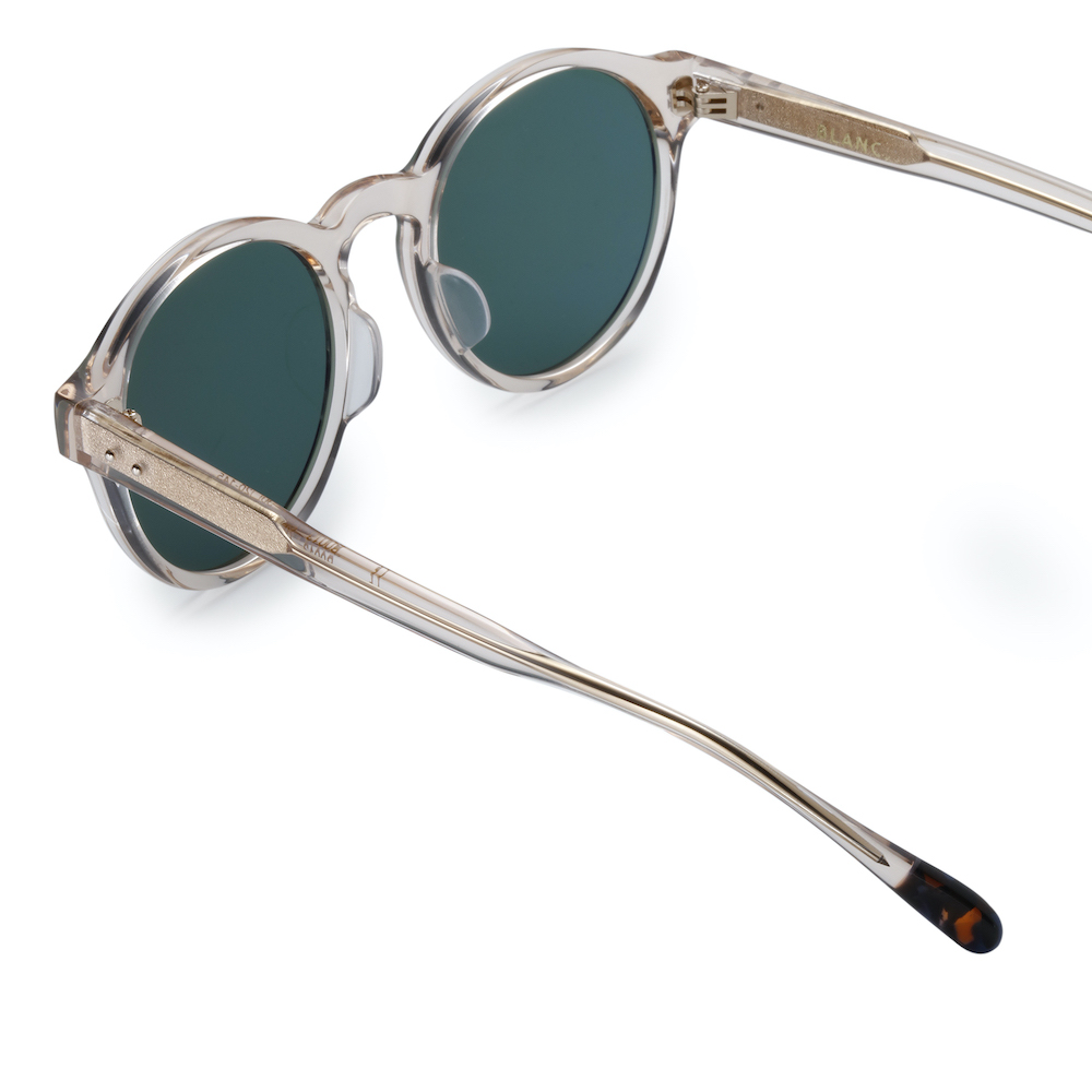 ・ブラックのフレームは少し透明感があることで、奥行きが生まれ肌馴染みが良いです。レンズはブラウンとブルーのハーフミラー。アイスピンクのフレームはロゼのシャンパンを彷彿とさせるクリアカラー。レンズはグリーンです。