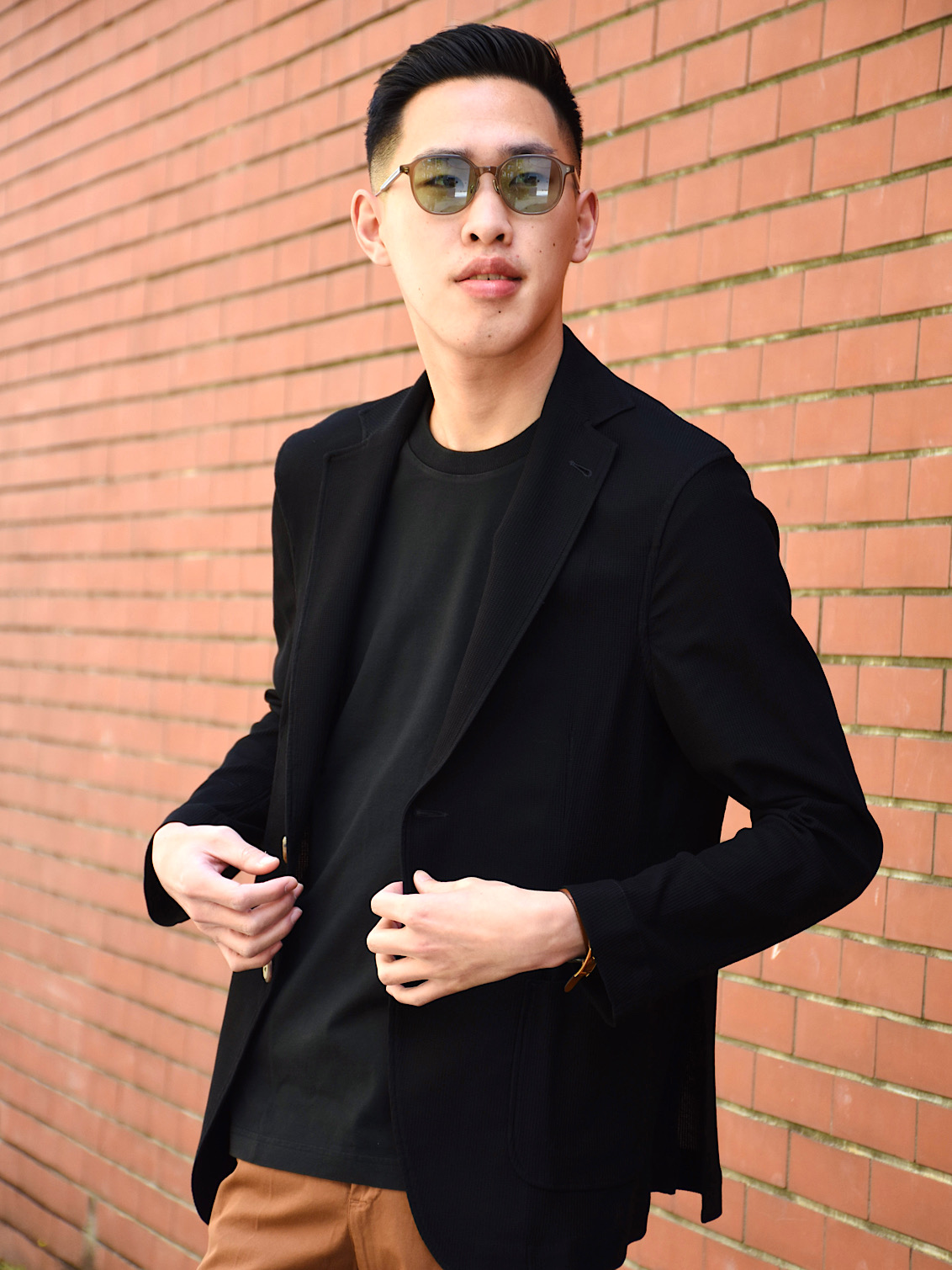チタンとプラスチックがコンビとなったこちらのアイウェア。カラバリも豊富で、掛かるだけで洒落た印象的が◎キリッとした顔まわりを作ってくれます。