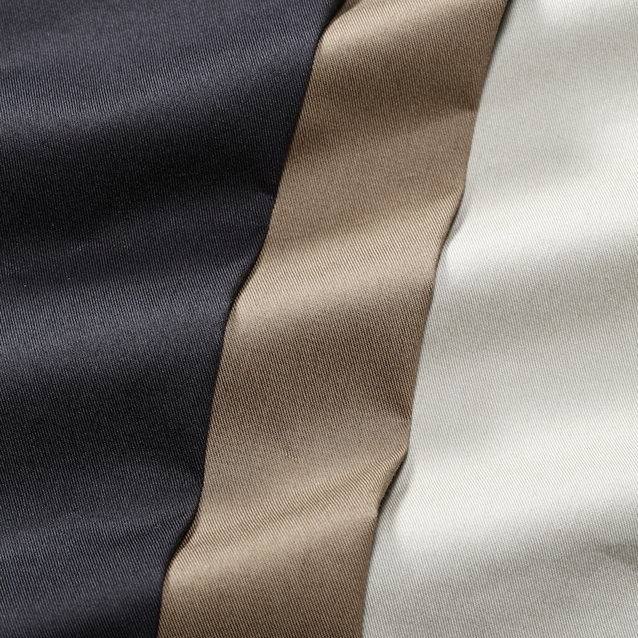 ・生地は”TECHNO COTTON GABARDINE”と名付けられたコットンとナイロンをブレンドし、ストレッチ性を持たせたもの。ドライタッチなので湿度が高い時期でも快適!ご自宅でケア出来るのも気が利いています。全3色をラインナップ。