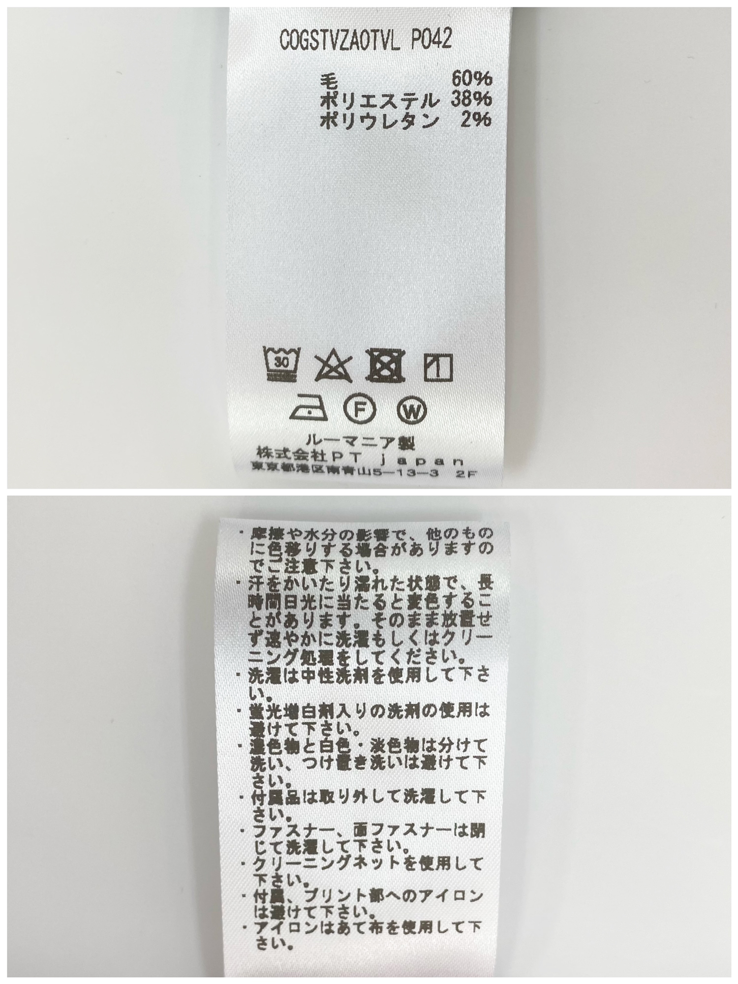 また、右後ろポケットの上にはスマホポケットが付いており、これが非常に便利!手帳型スマホケースを付けていれば、ポケットに入らないですが、背面ケースなどだと問題なく入ります。パンツのシルエットを崩さず、スッポリと収納が可能。そして、なんと言ってもシルエットの綺麗さですよね。ワンプリーツ仕様で腰回り程よくゆとりがありながらも、裾に向かって細くなっているテーパードシルエットは脚のラインを綺麗に見せてくれます。ジャケパンスタイルはもちろん、ライダース、ニット、コート、ニットパーカー、ダウンブルゾンなどなど、合わないアイテム無いと言っても過言ではございません!僕は昔から、スポーティなダウンブルゾンやナイロンブルゾンなどに合わせて、ラグスポスタイルに仕上げるのが好きだったりします。お好みのアイテムに合わせて頂くだけで、上品なコーディネートに仕上がるのです!細身体型でサイズ42を着用。ウエスト、ワタリ、ふくらはぎ、問題無しのバランスです。ですが、足首が細いので、いつも裾幅を1センチだけ詰めるのが前田流。