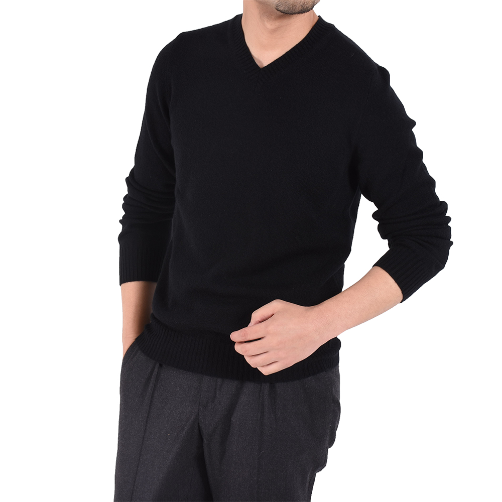 ・Vネック部分のリブ幅は細めでモダンな印象を与え、軽快に一枚でも着こなせる深さです。ベーシックから挿し色まで全7色をラインナップ。同じ編み地で、クルーネック、タートルネック、ジップアップもご用意しています。