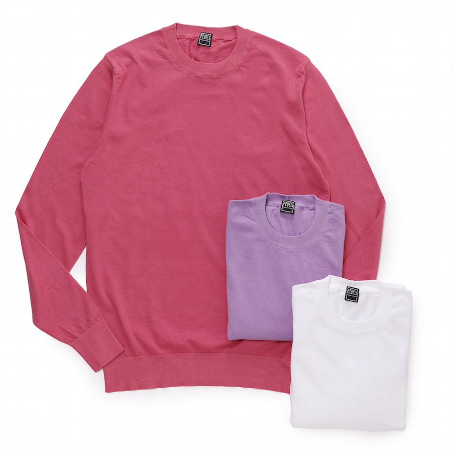 ・同じスーピマコットンを使用したミドルゲージシリーズもご用意。こちらのハイゲージは一枚でも着られますがジャケットやブルゾンのインナーにピッタリです。
