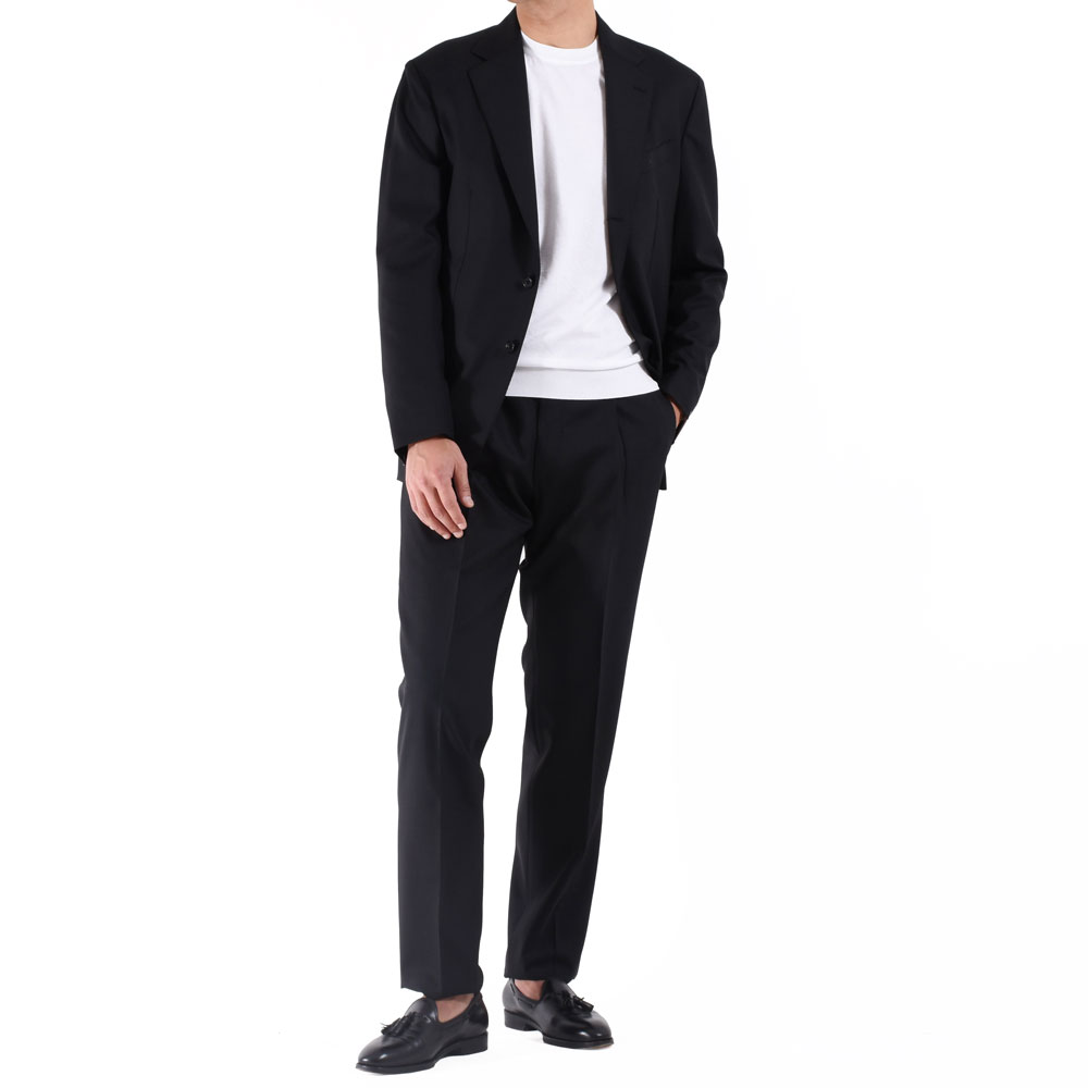・生地は目付け250グラムのトロピカル。ブラックという色ではありますが、トロピカル特有の清涼感は健在!通気性と復元力に富んだ天然の機能素材です。