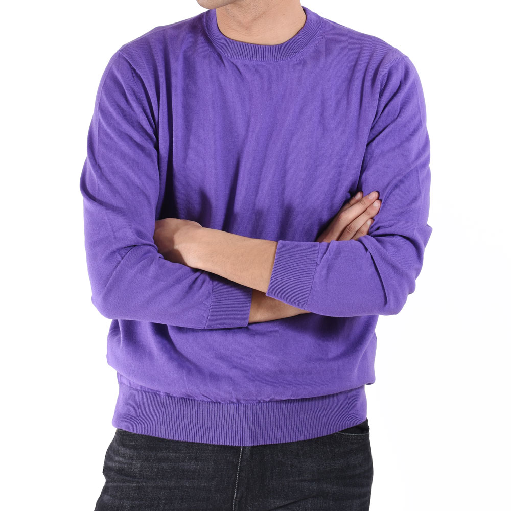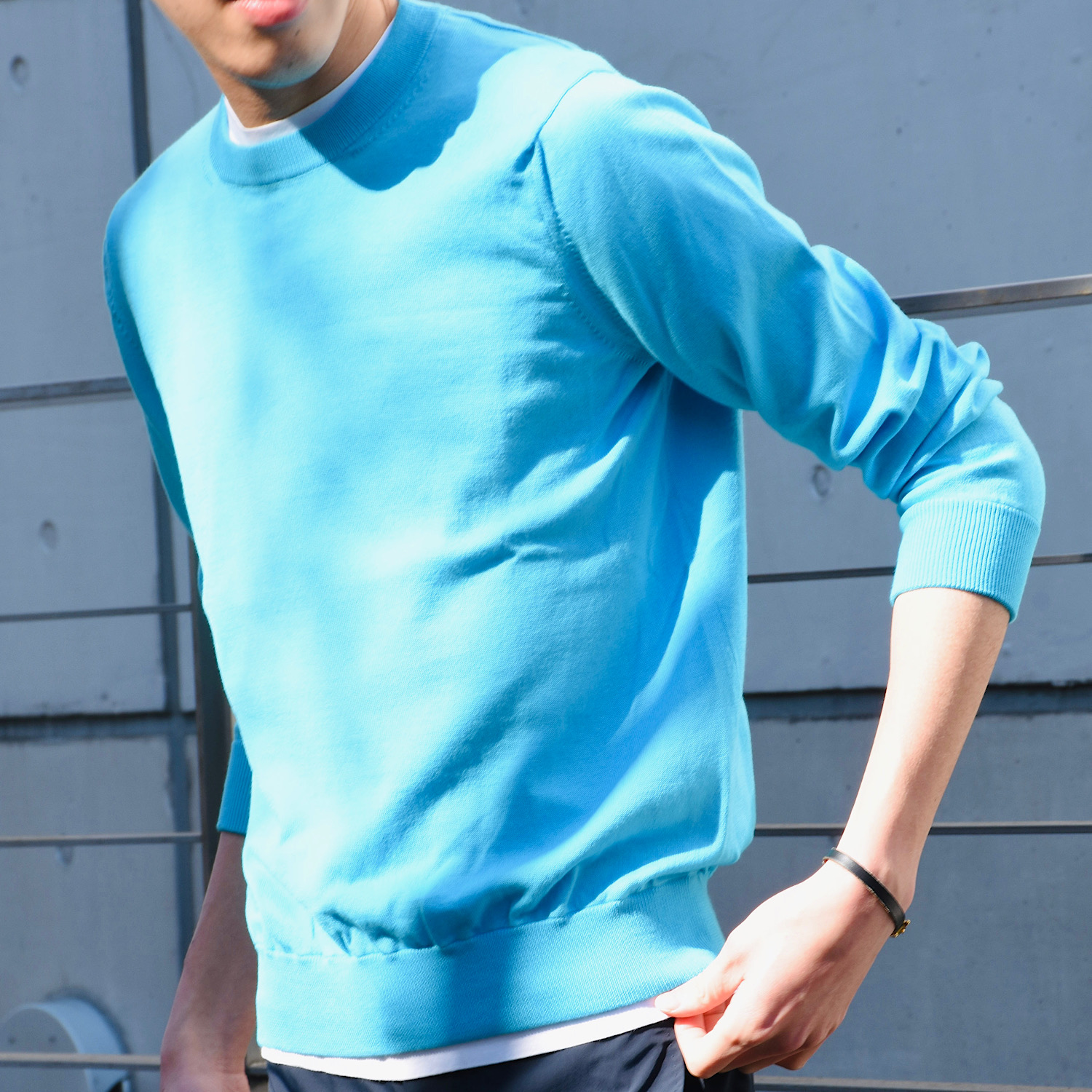・目の詰まったカジュアル感ある風合いから通称"スウェット風編み地"と呼ばれ、着れば極上のリラックスムードを醸す今の時代感にピッタリな編み地です。その編み地を使ったクルーネックに上品さを加えるべく、ネックリブ幅を細め(およそ2.5センチ)に別注しました。