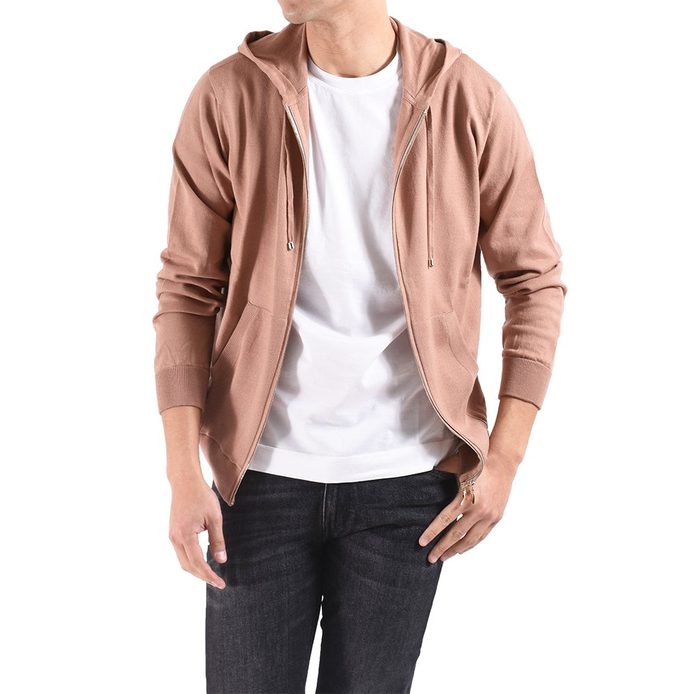 ・目の詰まったカジュアル感ある風合いから通称"スウェット風編み地"と呼ばれ、着れば極上のリラックスムードを醸す今の時代感にピッタリな編み地です。その編み地を使ったパーカーはニットならではの品の良さも備えたスタンダードでリラックス感あるシルエット。
