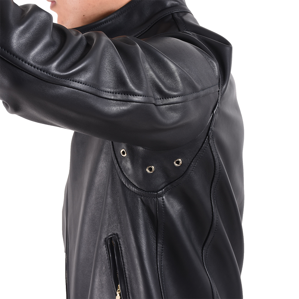 ・ライダースならではのハードさも良いものですが、その印象を絶妙な具合に薄めることで、室内で着やすくなったり、デスクワークがしやすくなったり、とジャケット代わりに着ること多くなった今の時代感に合わせつつ、ラグジュアリー感のあるBR別注を実現しました。
