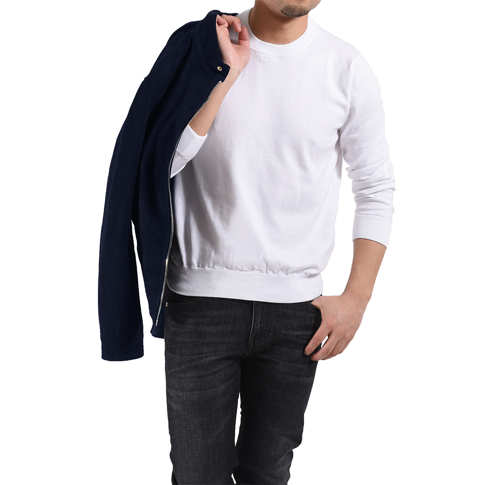 サイズ50を着用。細過ぎず緩過ぎずのナチュラルなフィッティングでジャストサイズでした。スウェードゆえしなやかな着心地ですので長時間着てても非常にラクです。