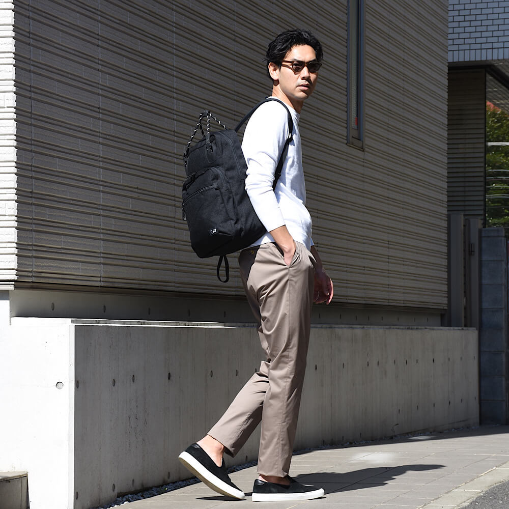 ・安定感ある股上の深さ、ワタリはゆとりがあるものの強いテーパードラインが"scotch(スコッチ)"の特徴。センタークリースが入っていることもあり、締まりがありつつリラックスしたシルエットと穿き心地が楽しめます。