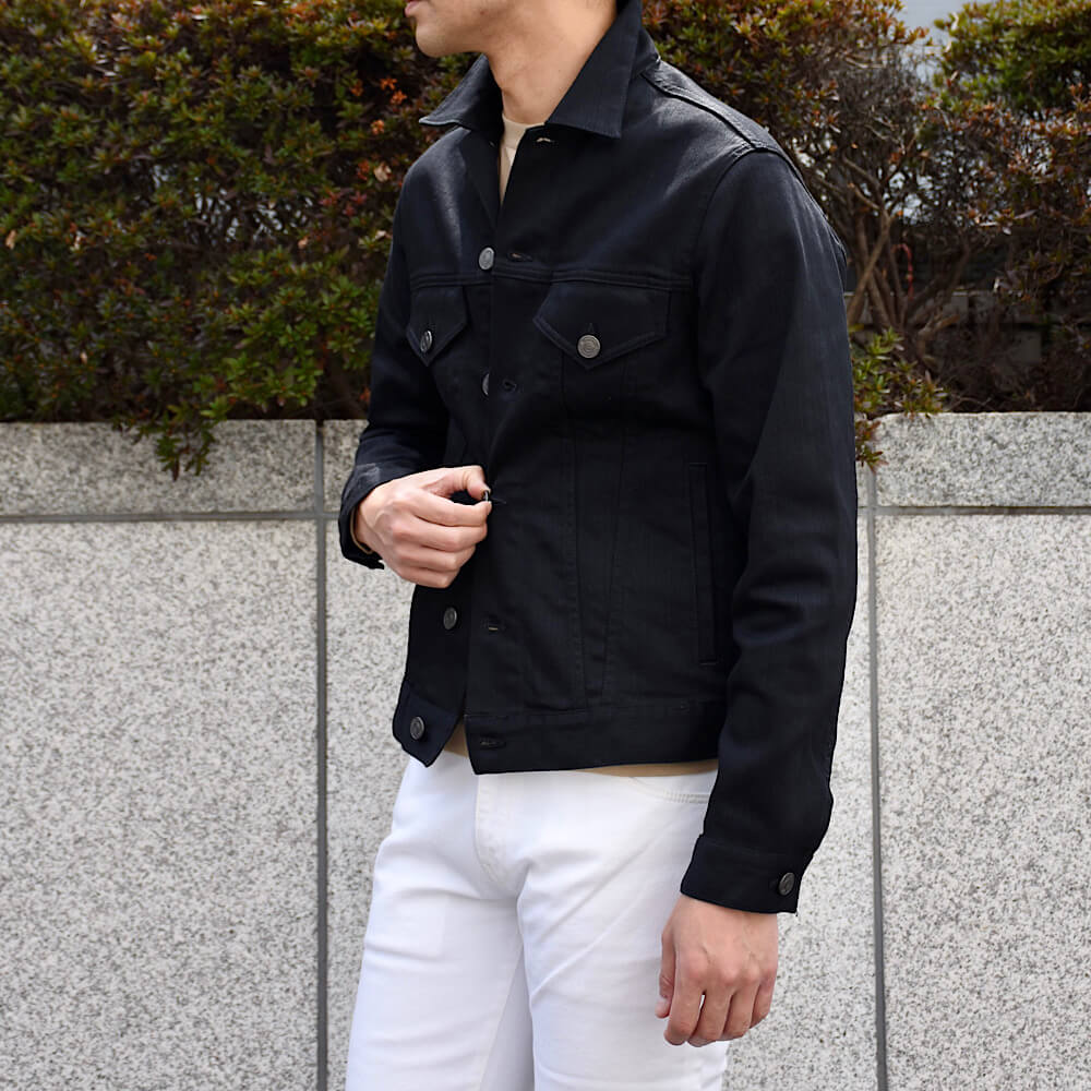 ・生地は通年着用可能なしっかりとした厚みがありつつもストレッチ性は抜群。そして糊を効かせたような風合いでフィニッシュされています。しばらくはこのパリッと感を楽しみ、しばらく経ってから水を通して馴染ませる、という着方も雰囲気に変化が付けられておススメです。