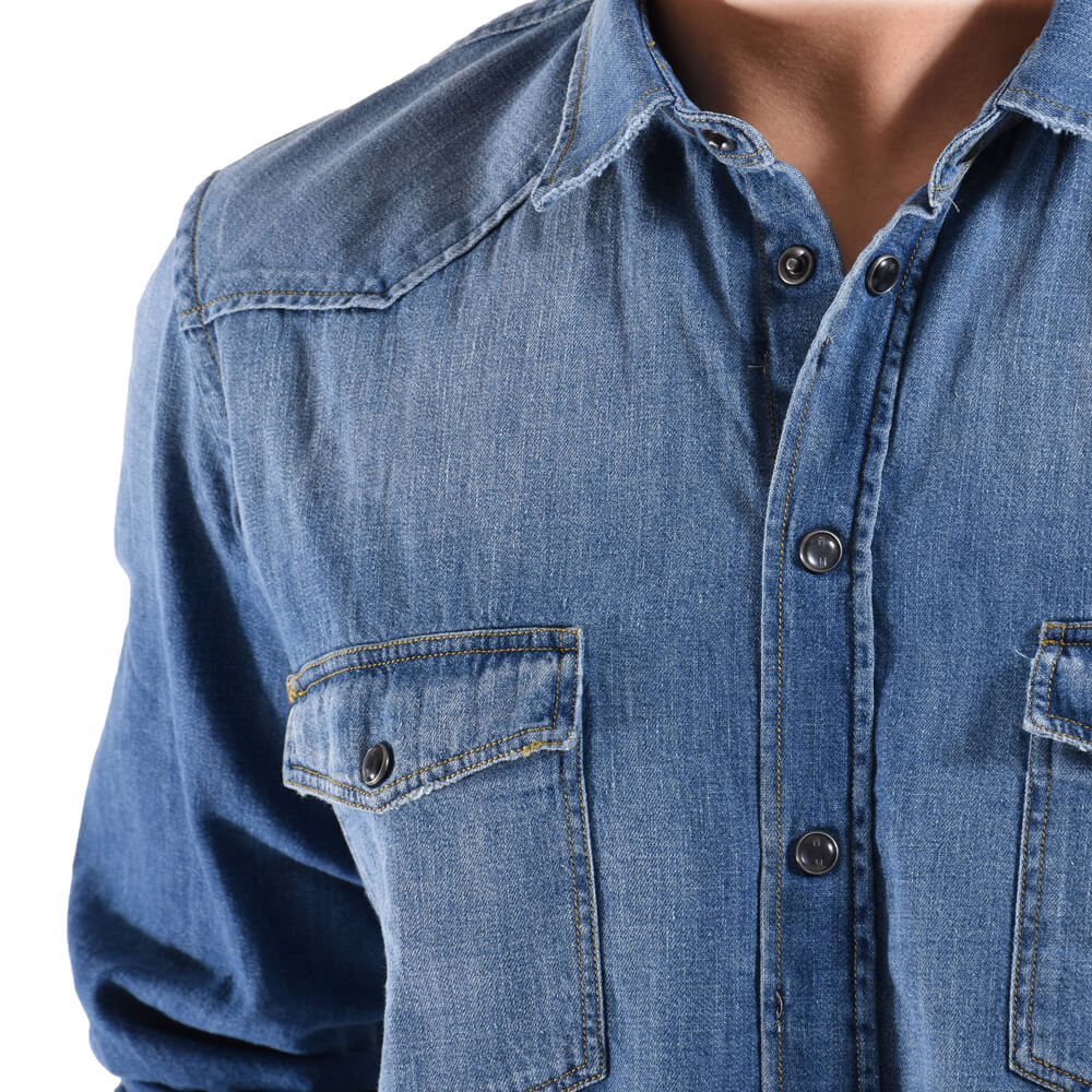 ・特徴であるウエスタンヨーク、そしてフロントやポケット、カフスのスナップボタンなど、ベーシックなデザインに仕上げられています。