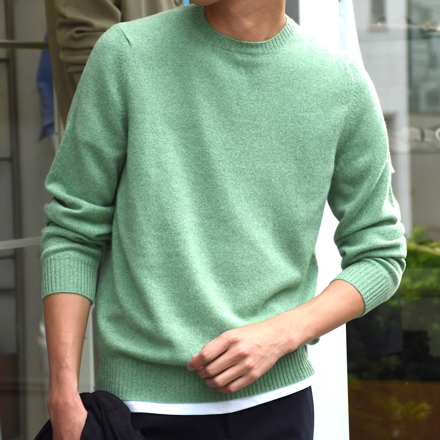 ・クルーネック部分のリブ幅は細めでモダンな印象を与え、軽快に着こなせます。ベーシックから挿し色まで全9色(オフホワイト/ライトベージュ/ベージュ、グレー/ブラック/ネイビー)をラインナップ。同じ編み地で、Vネック、タートルネック、ジップアップもご用意しています。