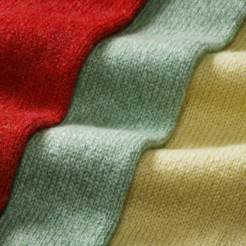 ・カシミア原毛を色によって使い分けているのも「FEDELI (フェデリ)」の特徴です。ホワイト原毛は薄い色目、ブラウン原毛は濃い色目に分けて製品染めすることで、鮮やかで深みある色合いを実現しています。