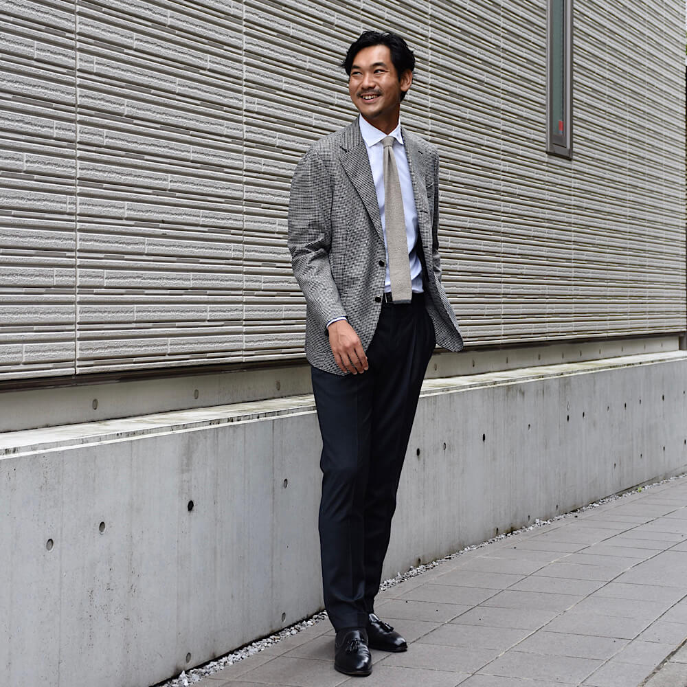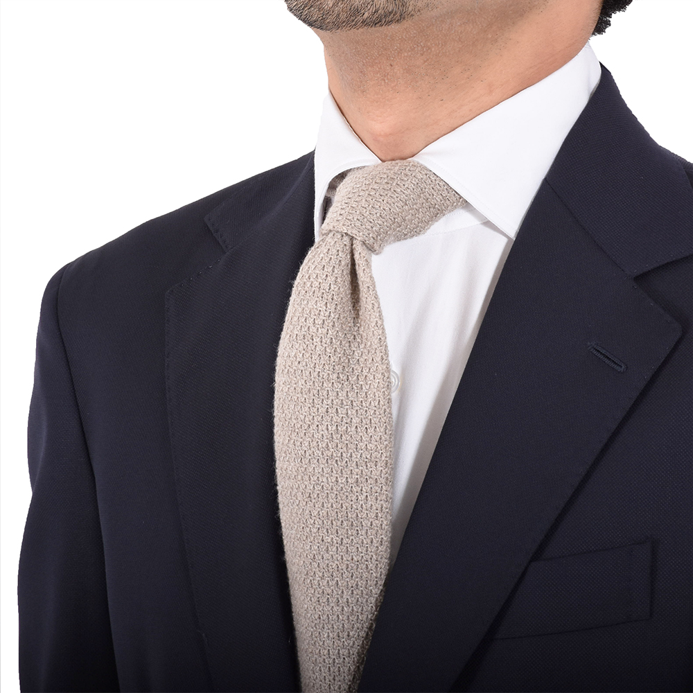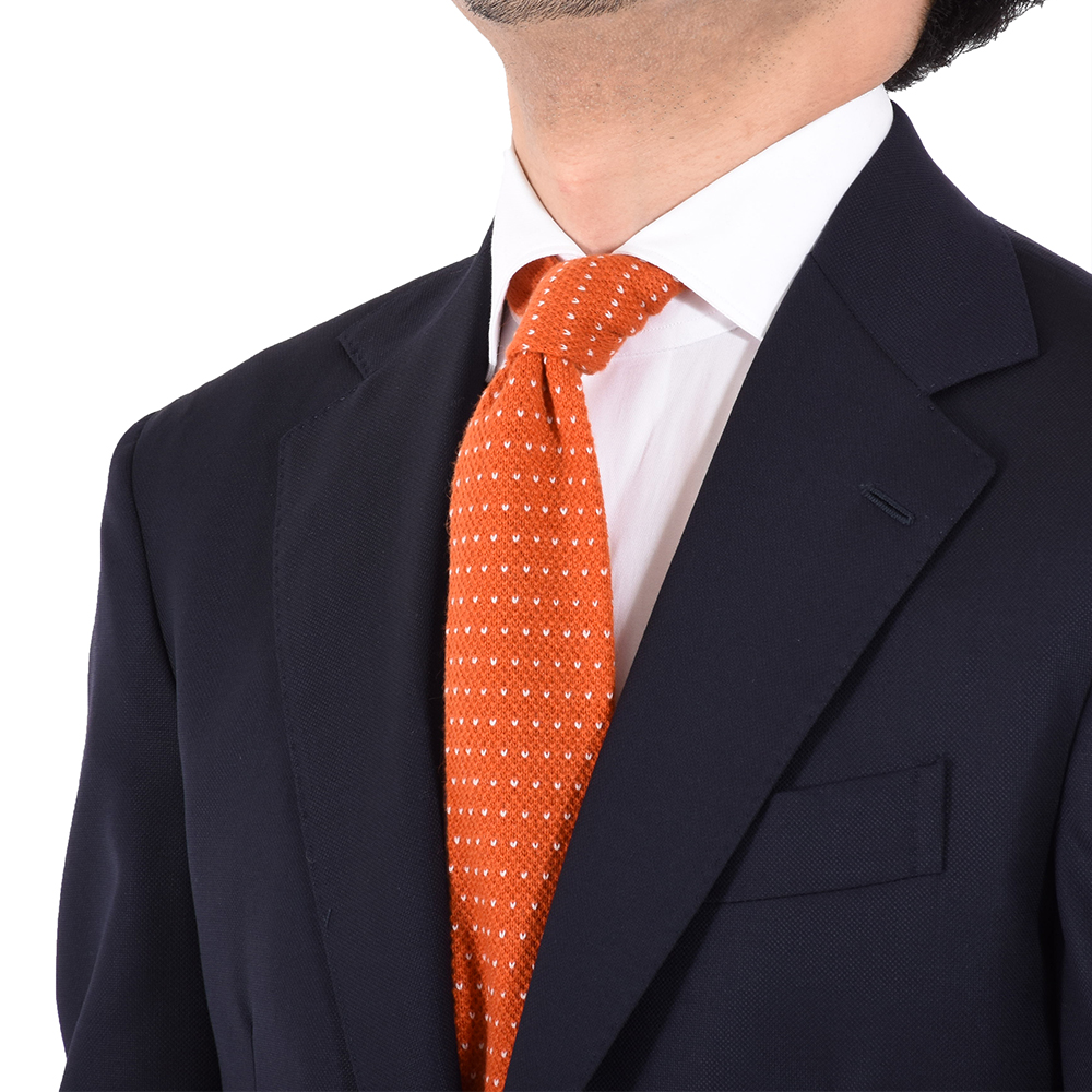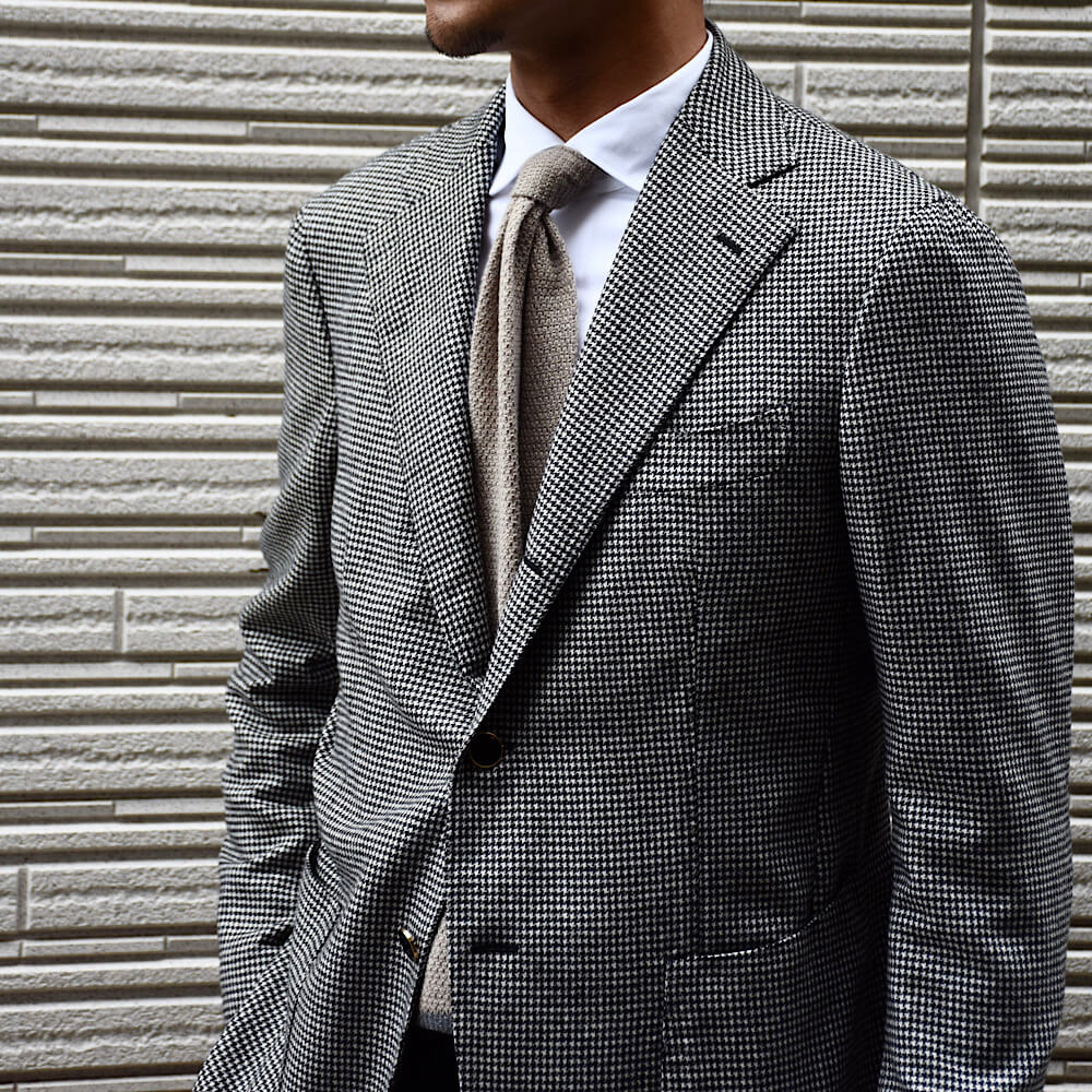 ・贅沢に100%カシミアを使用したニットタイ。この素材ならではの柔らかさと品のある表情は秋冬シーズンのVゾーンを彩るのにピッタリ。