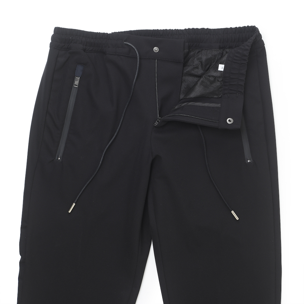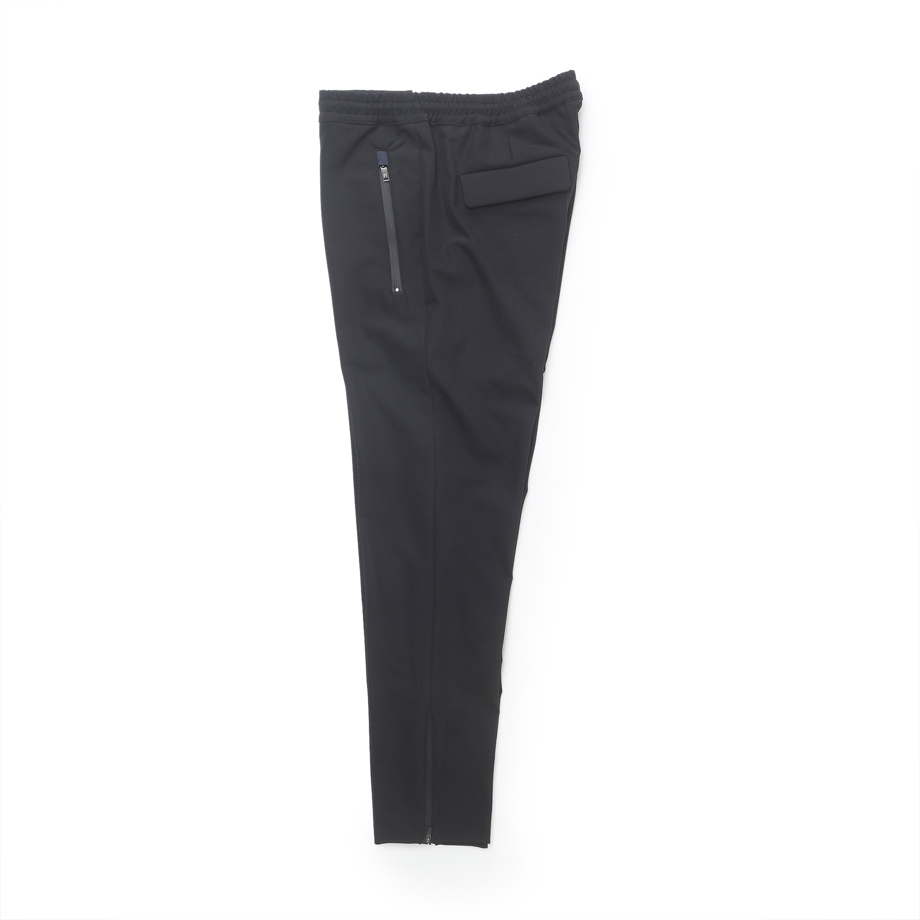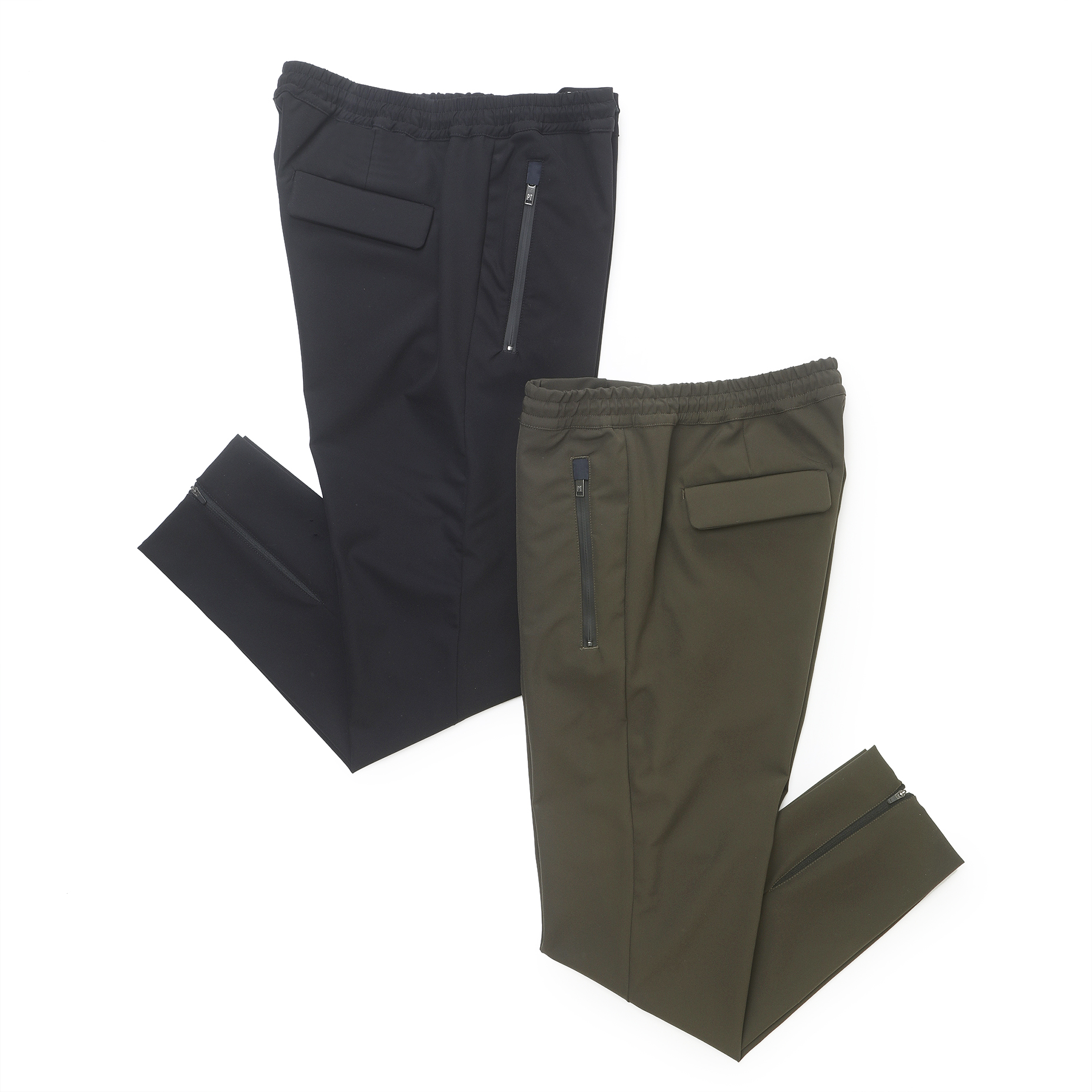 ・裾ZIPのデザイン、上質なストレッチナイロン生地、そして前ポケに止水ZIPが組み合わされた"機能的かつスポーティ"な一本。ご自宅でのケアができる点も気が利いています。