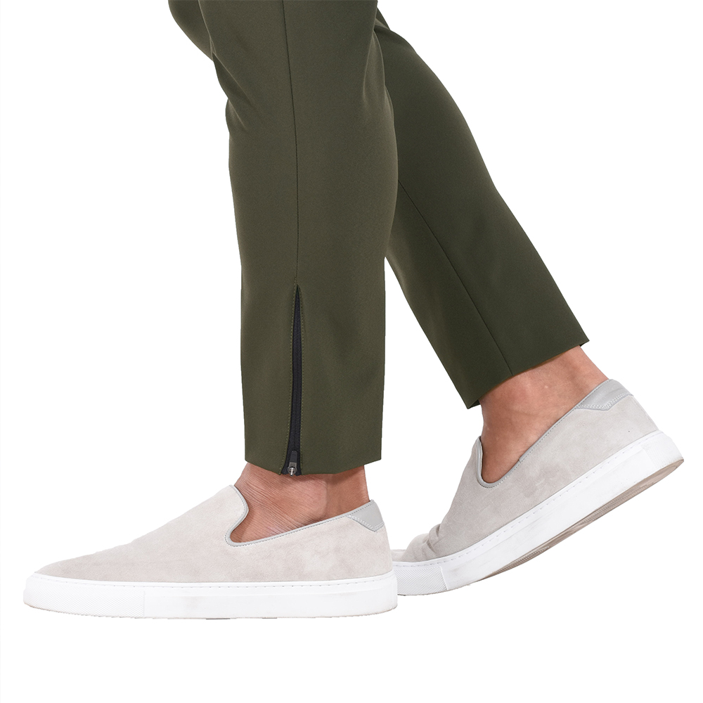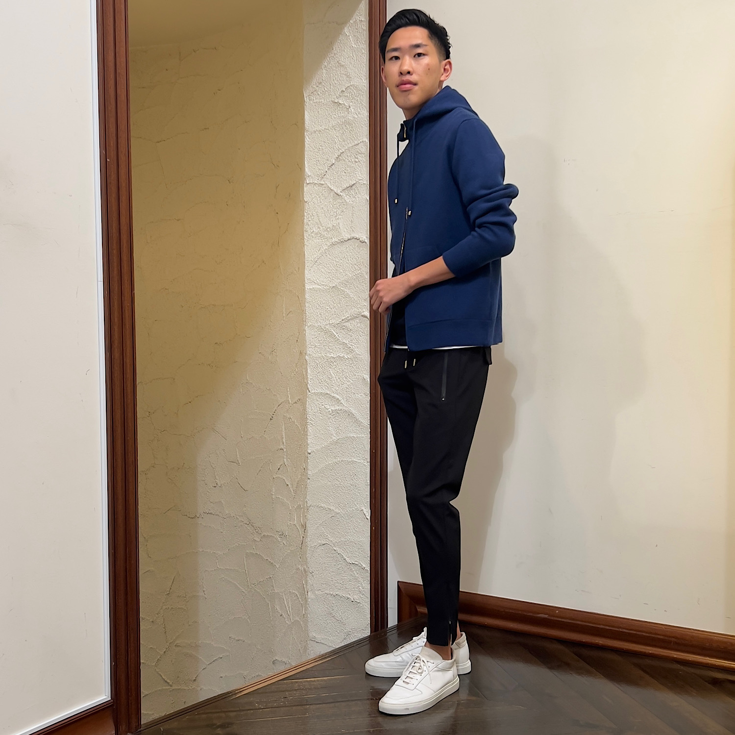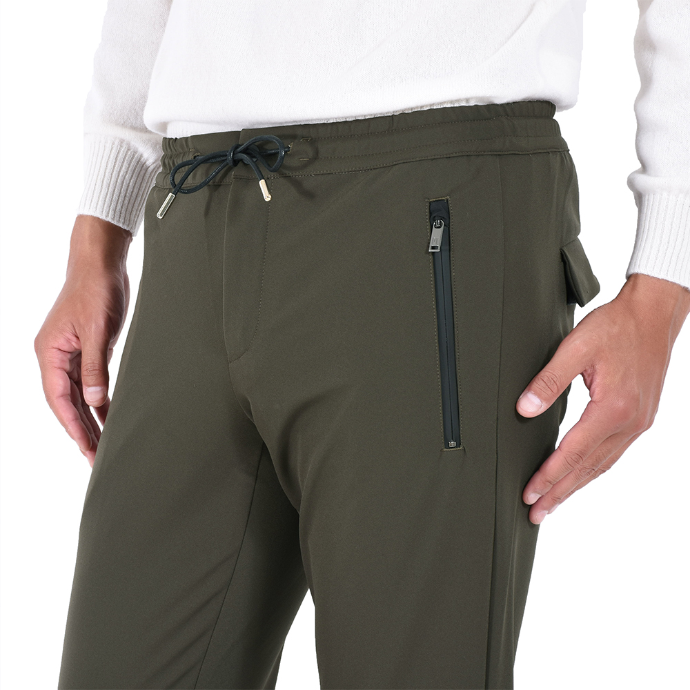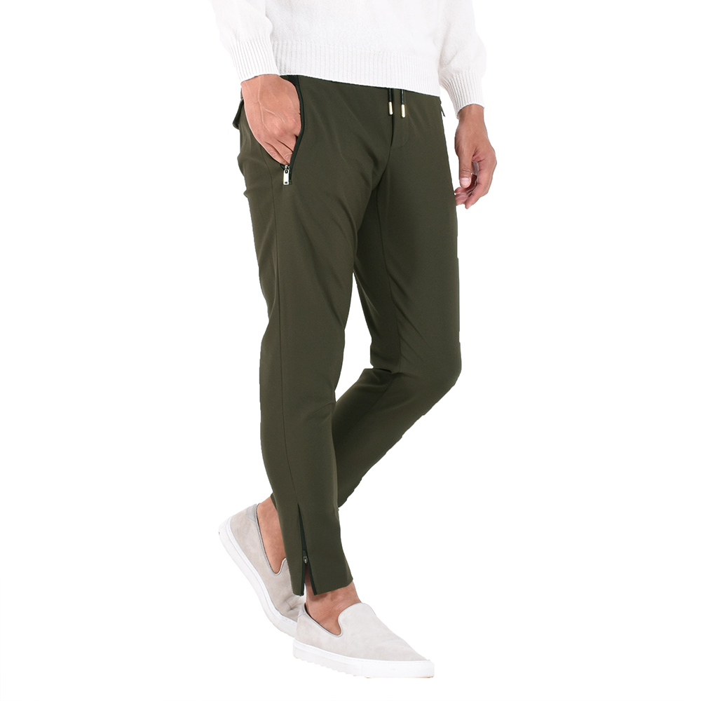 ・裾ZIPのデザイン、上質なストレッチナイロン生地、そして前ポケに止水ZIPが組み合わされた"機能的かつスポーティ"な一本。ご自宅でのケアができる点も気が利いています。