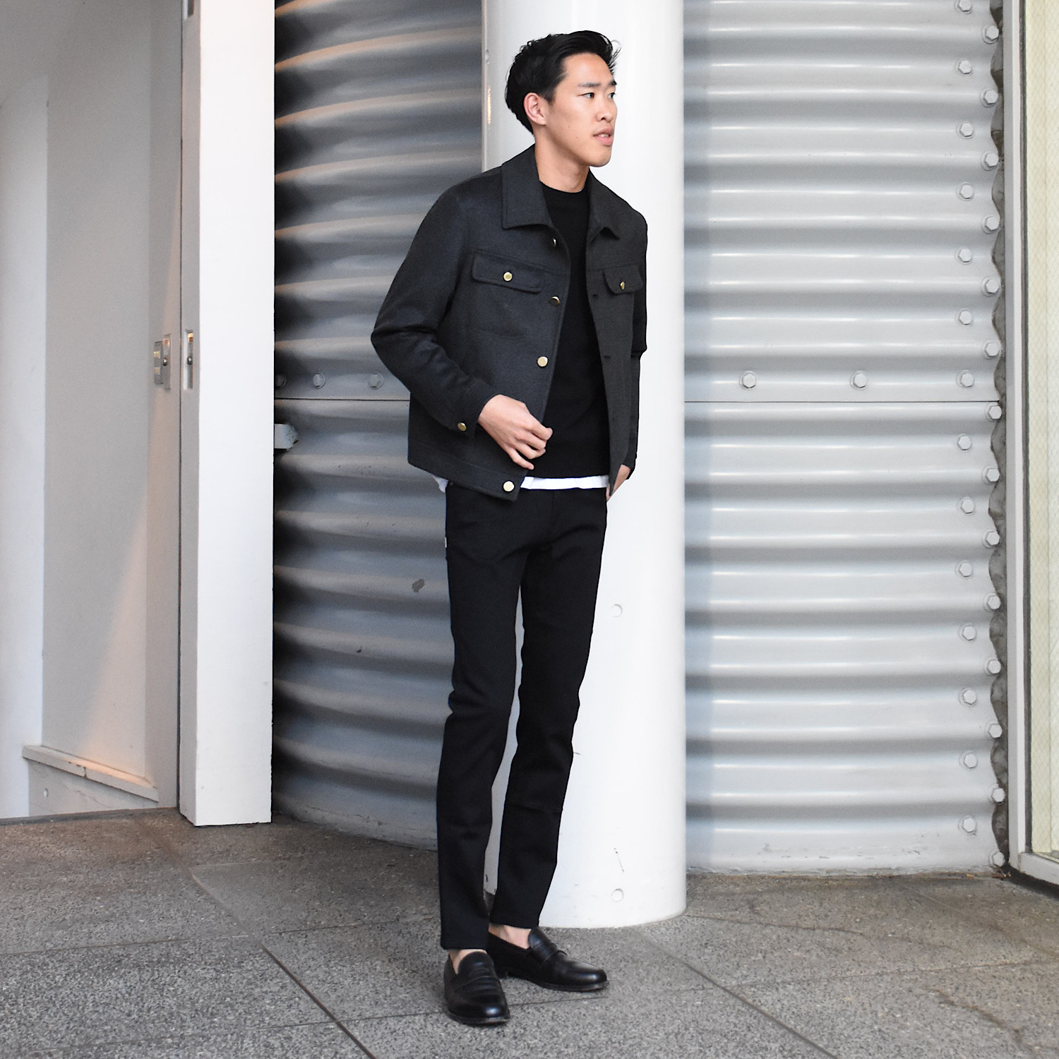 ・適度にゆとりあるシルエット、軽快でありながら短過ぎない着丈によってリラックス感ある仕上がりに。