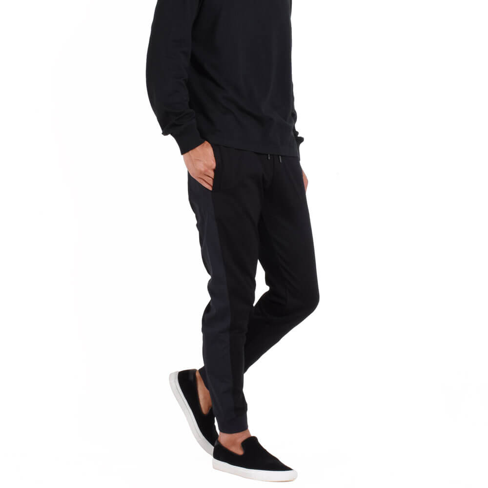 ・環境に配慮したオーガニックコットンを一部に使用しているコットンジャージーのセットアップとなるパンツ。サイドは微光沢感のあるポリエステルパーツを配した切り替えとなっており左右それぞれにデザイン性をもたせた一本となっています。