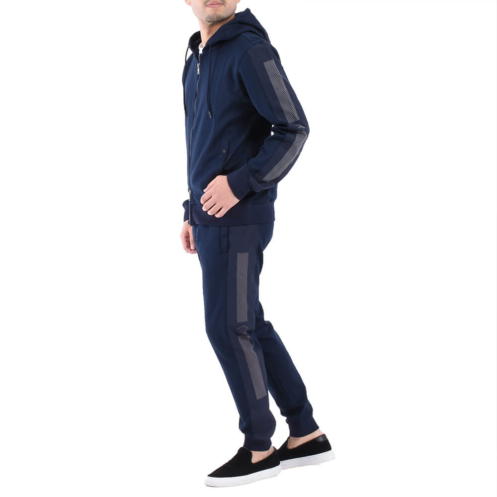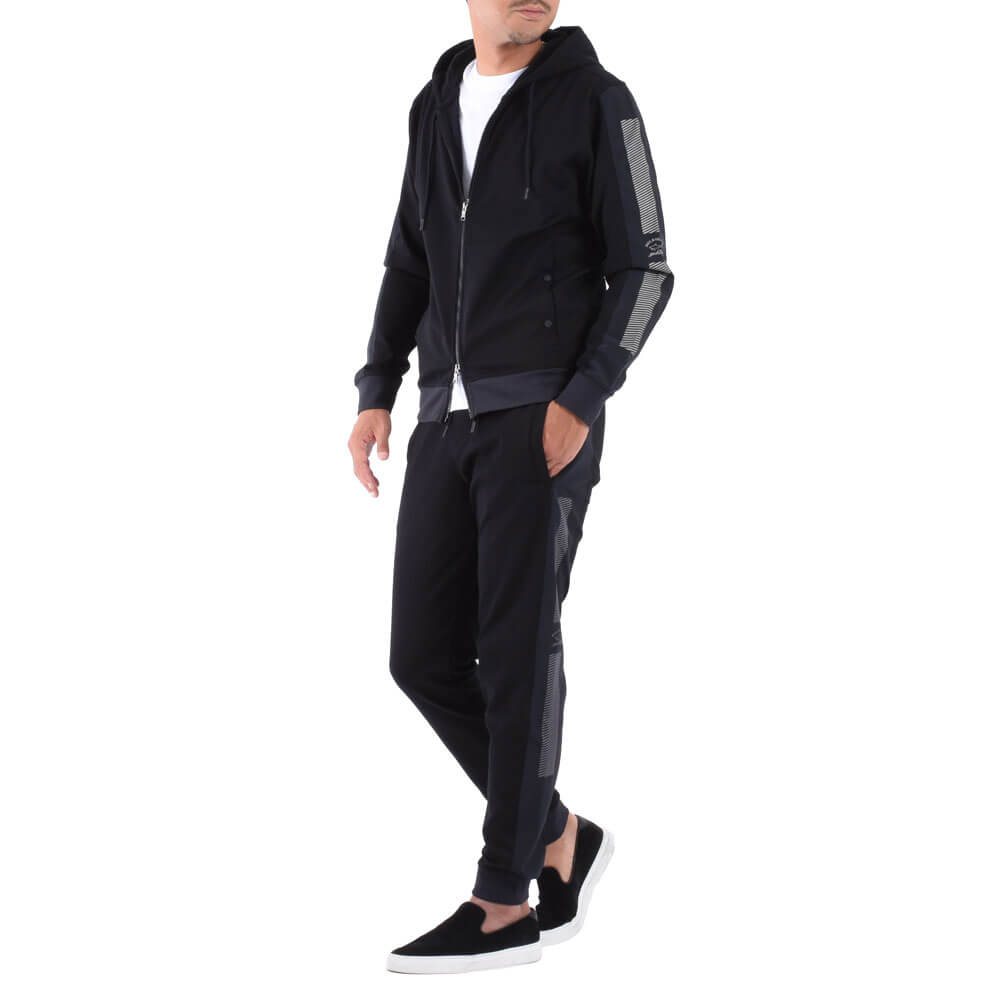 ・ストレッチ性抜群のコットンベースのジャージーは着心地抜群です。表面は柔らかみがあり、裏面はドライなタッチで実に快適。ゆえにインドア(部屋着)からアウトドア(外出着)までを完全網羅!都会的なセットアップに仕上げられています。ご自宅でもケア出来るのも使い勝手の良い点です。
